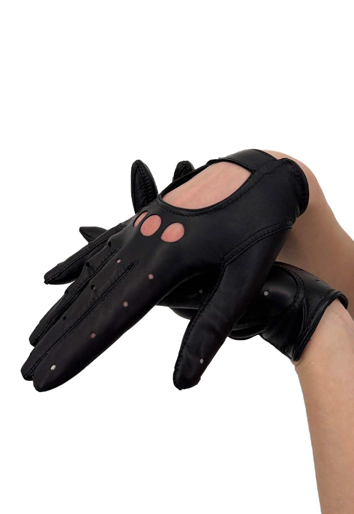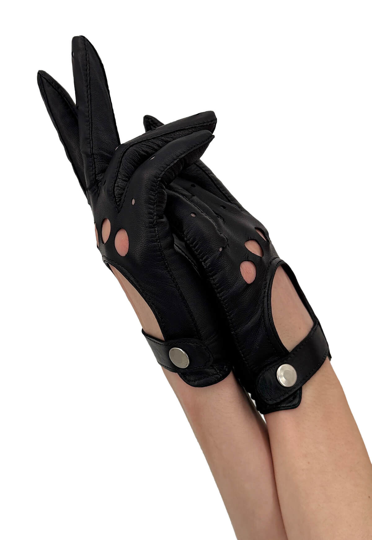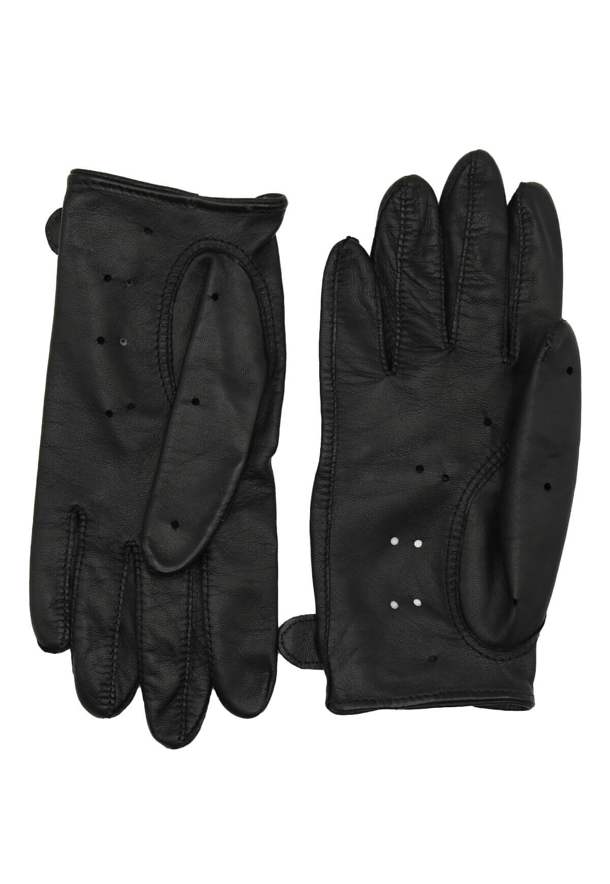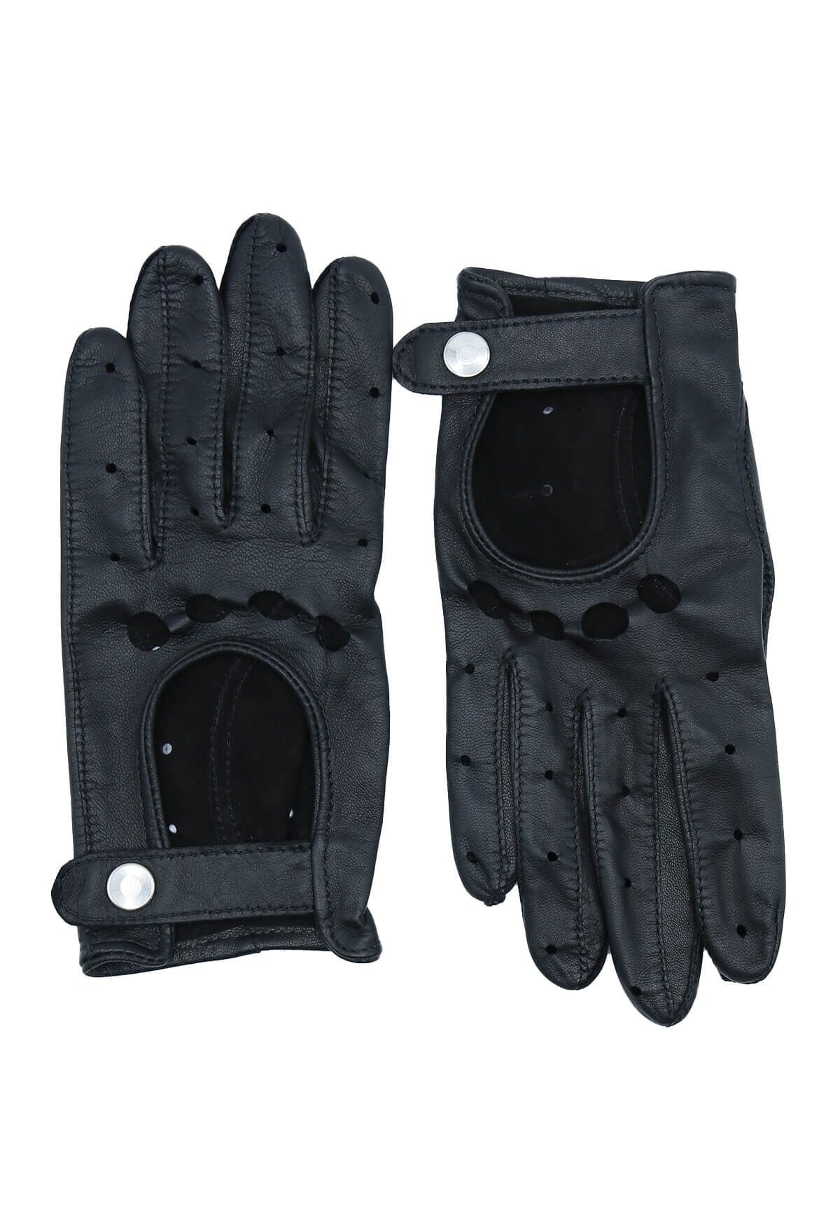 Damen Leder Autofahrerhandschuhe – Diese ungefütterten Autofahrerhandschuhe aus italienischem Leder bieten eine optimale Passform dank des weichen Materials. Die Innenseite sorgt für sicheren Halt, während die offenen Knöchel und die perforierten Finger eine ausgezeichnete Atmungsaktivität beim Fahren gewährleisten. Zudem verfügen die Handschuhe über einen ansprechenden Druckknopfverschluss.