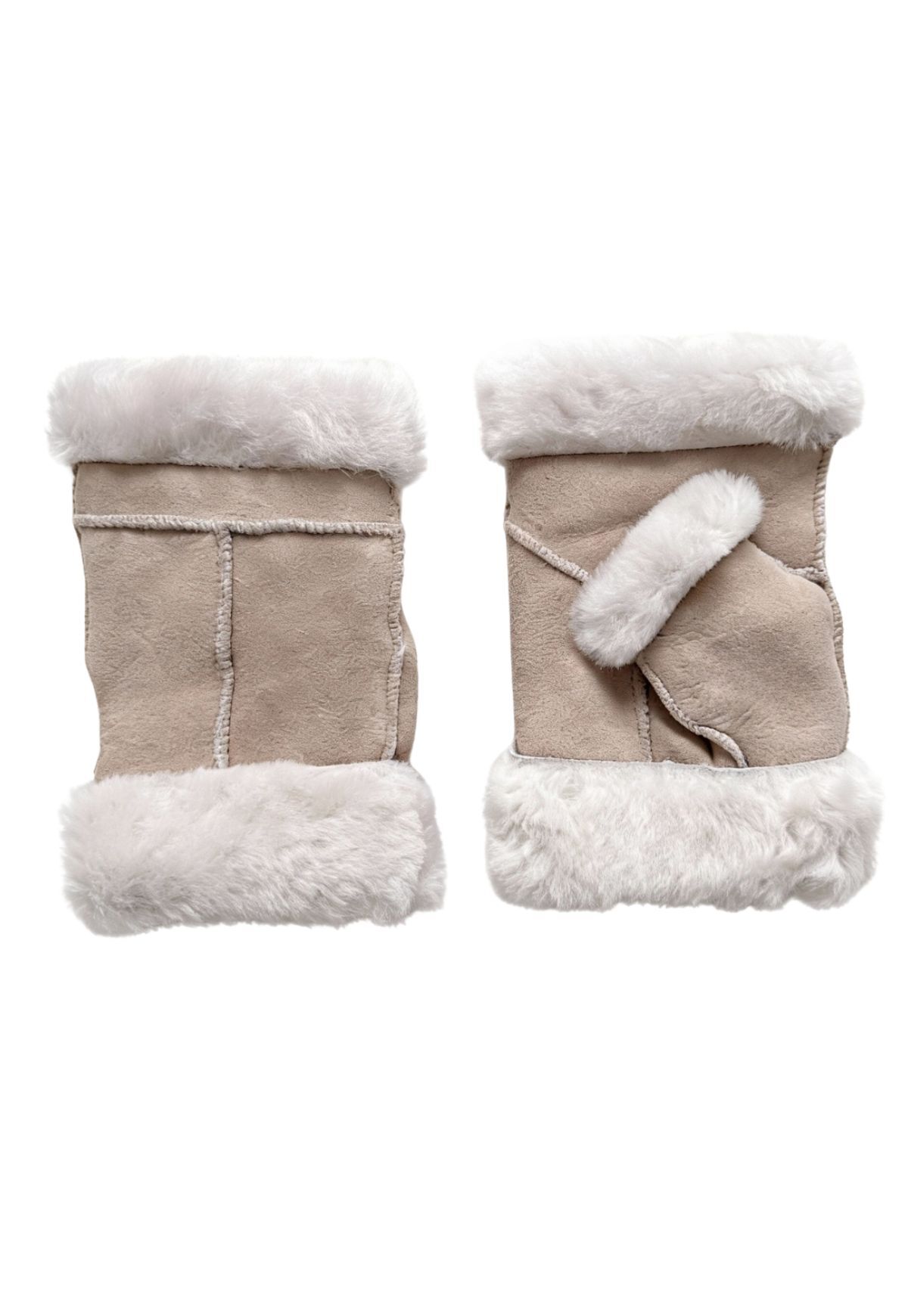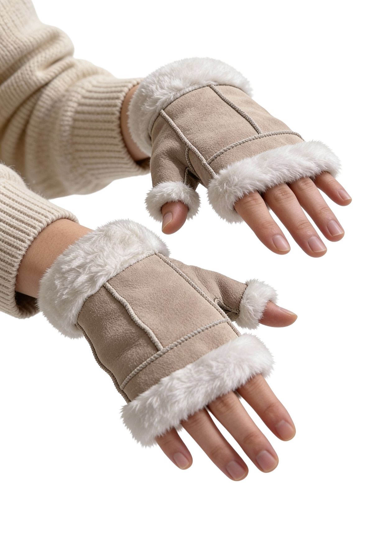 Fingerlose Handschuhe aus Lammfell in Beige – warm & zeitlos