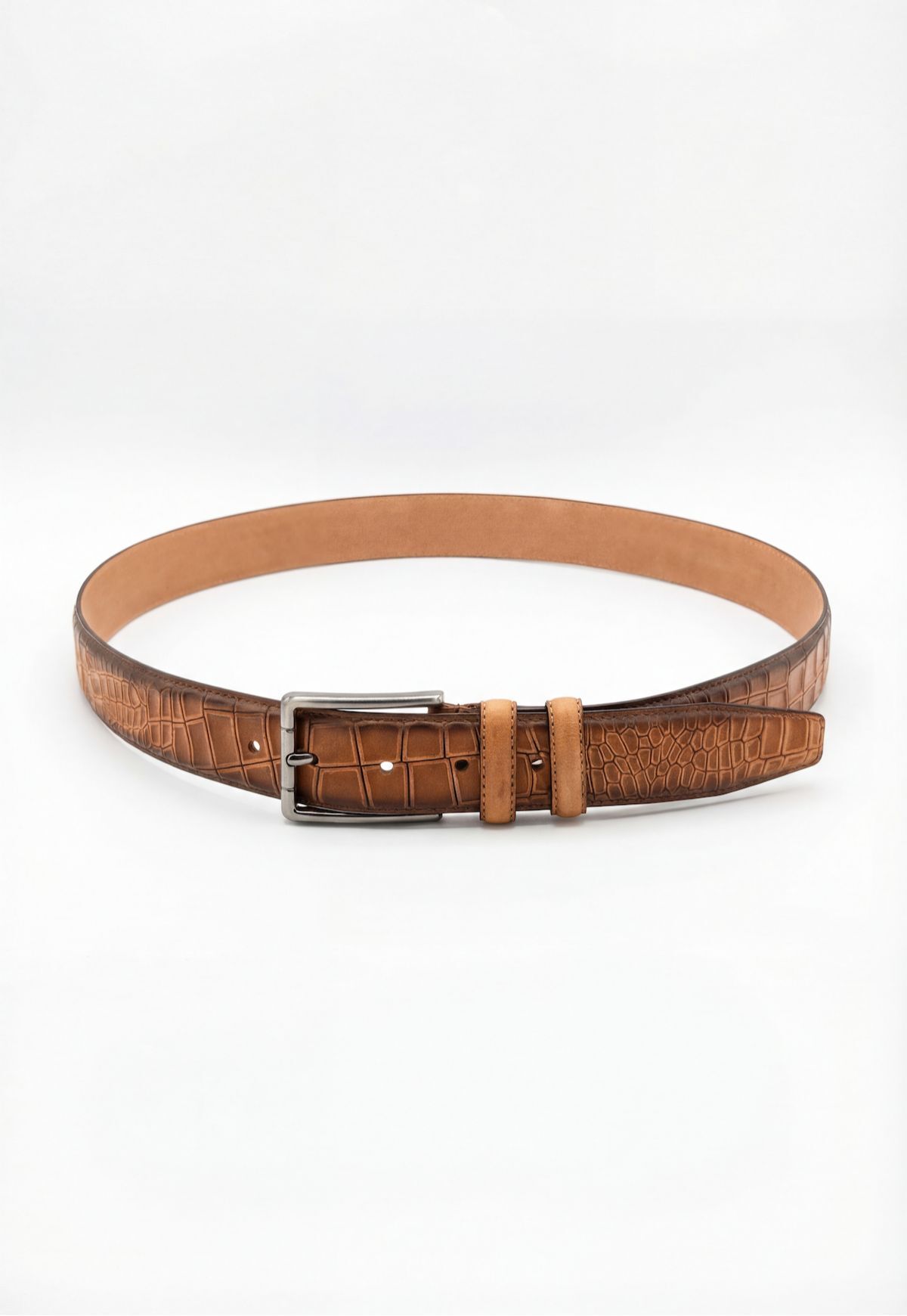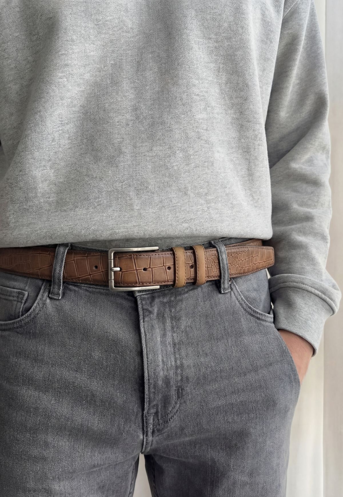 Ledergürtel Braun im Kroko-Design aus echtem Büffelleder – Unisex