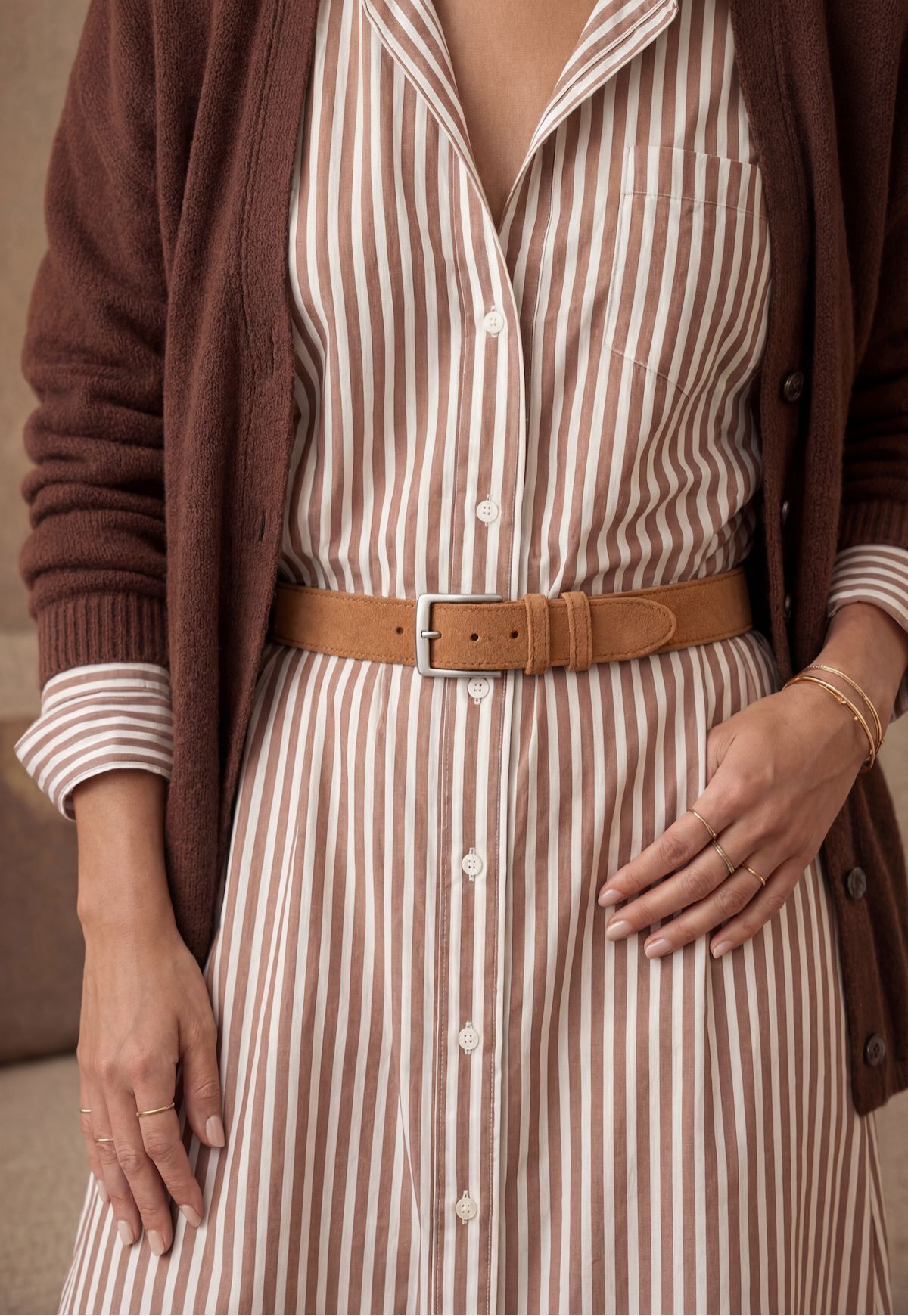 Mit einer Breite von 4 cm setzt der Gürtel ein kraftvolles Statement und bietet gleichzeitig optimalen Halt. Ob zur Jeans, Chino oder als stilvoller Kontrast zu Business-Outfits – dieser Wildledergürtel ist vielseitig kombinierbar und verleiht jedem Outfit eine elegante, lässige Note.