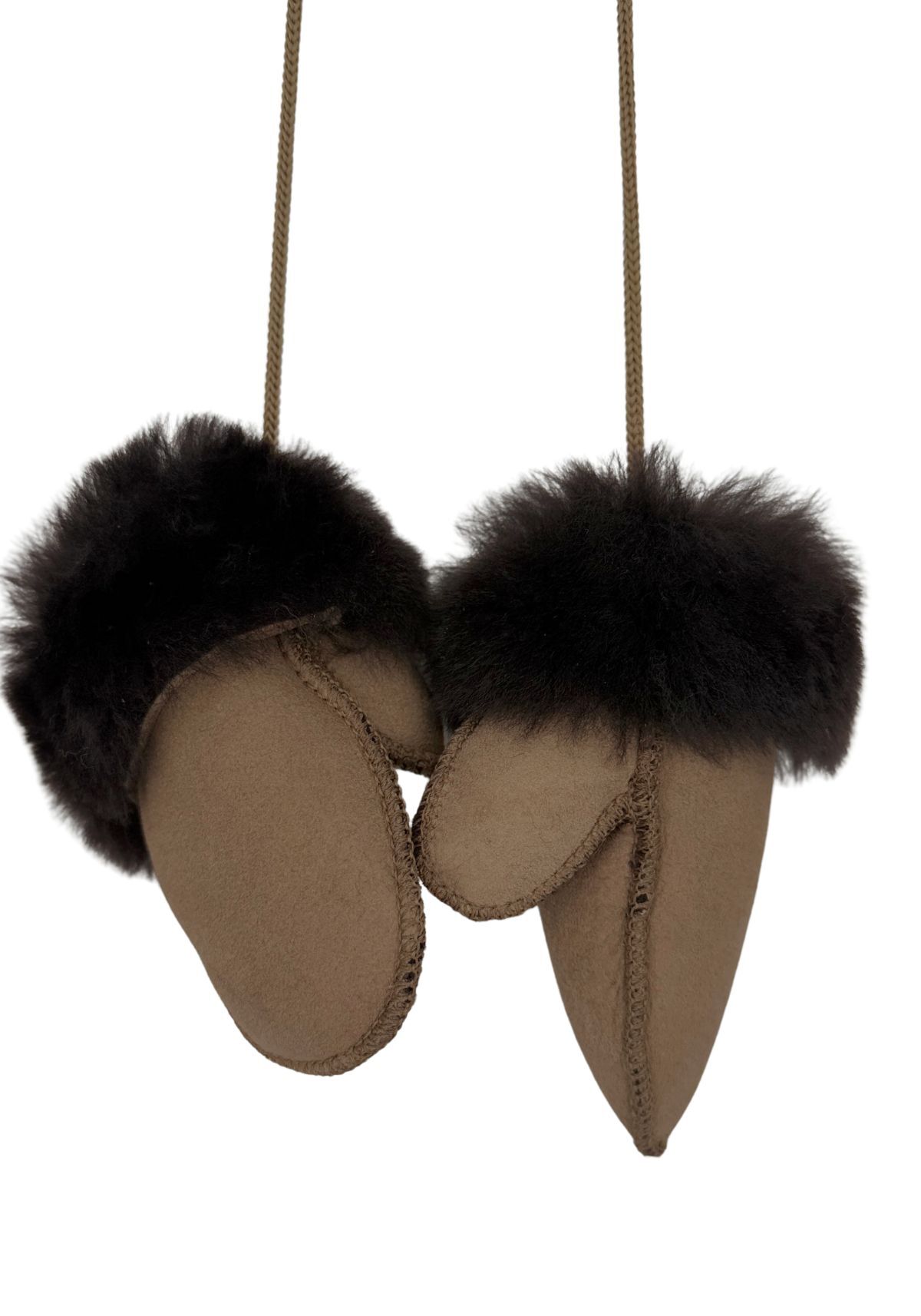 Merino Lammfell Kinder Fäustlinge mit Daumen - Braun (1-3 Jahre)