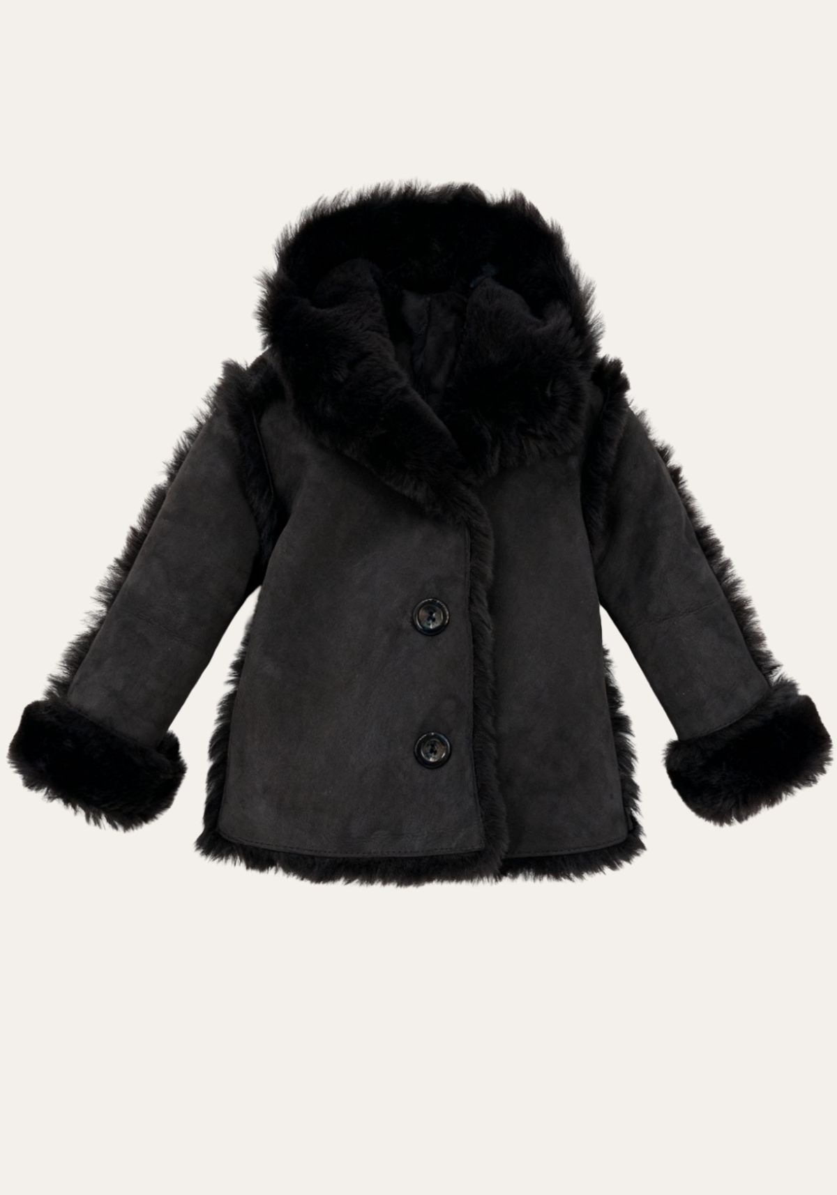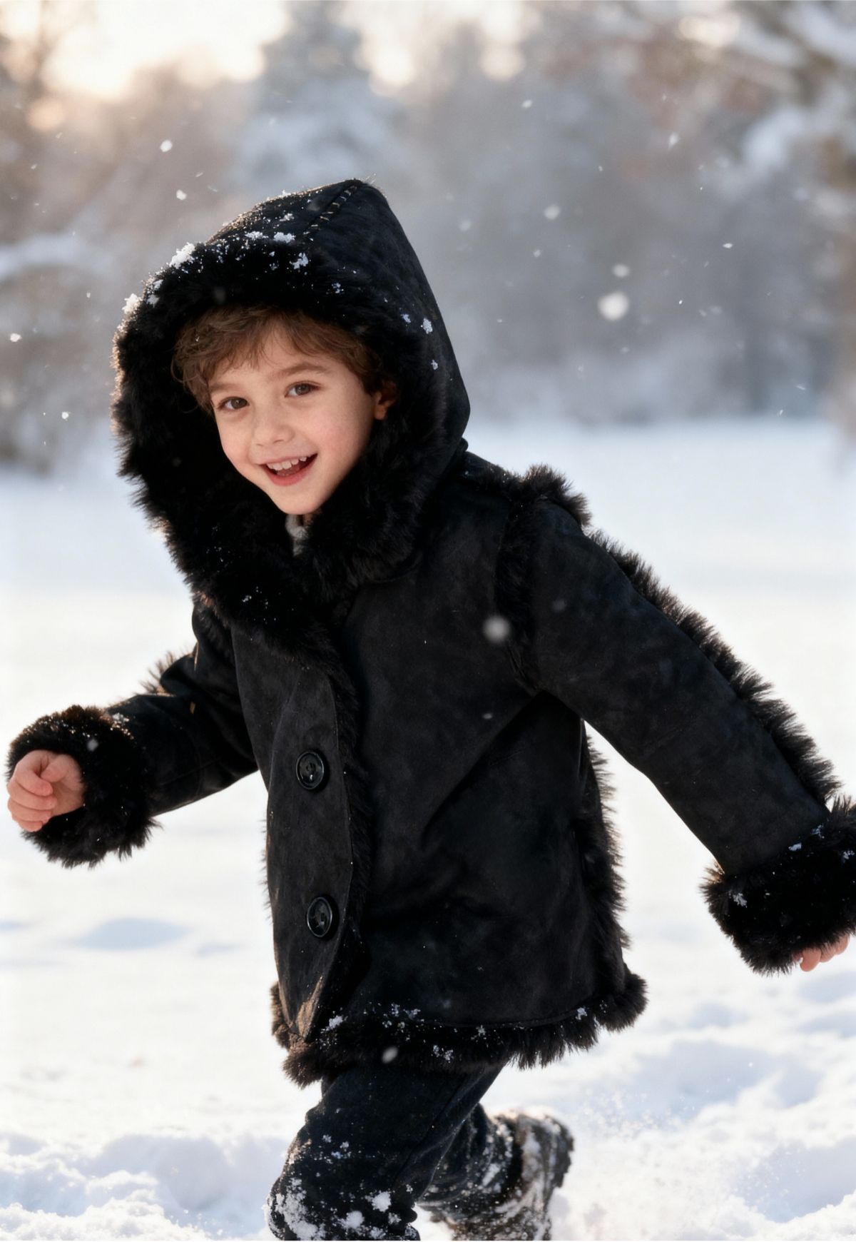 Die Luan Lammfelljacke ist wie eine liebevolle Umarmung an kalten Tagen. Gefertigt aus echtem Merino-Lammfell, verwöhnt sie mit kuschelweicher Fellseite innen und edlem Veloursleder in erdigem Dunkelbraun außen. Sie hält kleine Abenteurer angenehm warm – ganz ohne zu überhitzen.