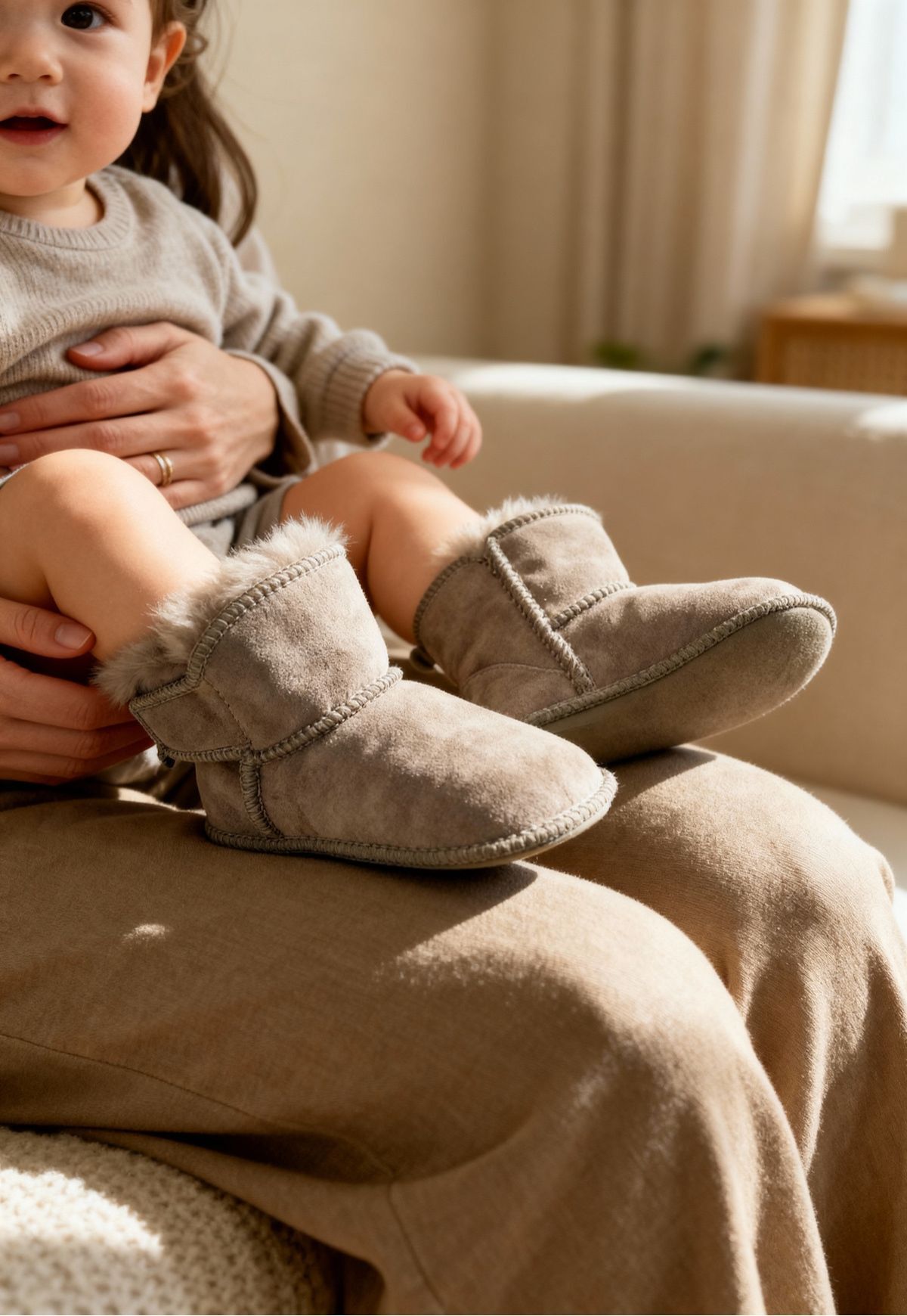 Baby Lammfellschuhe MIT KLETTVERSCHLUSS Camel – Weich, warm & rutschfest