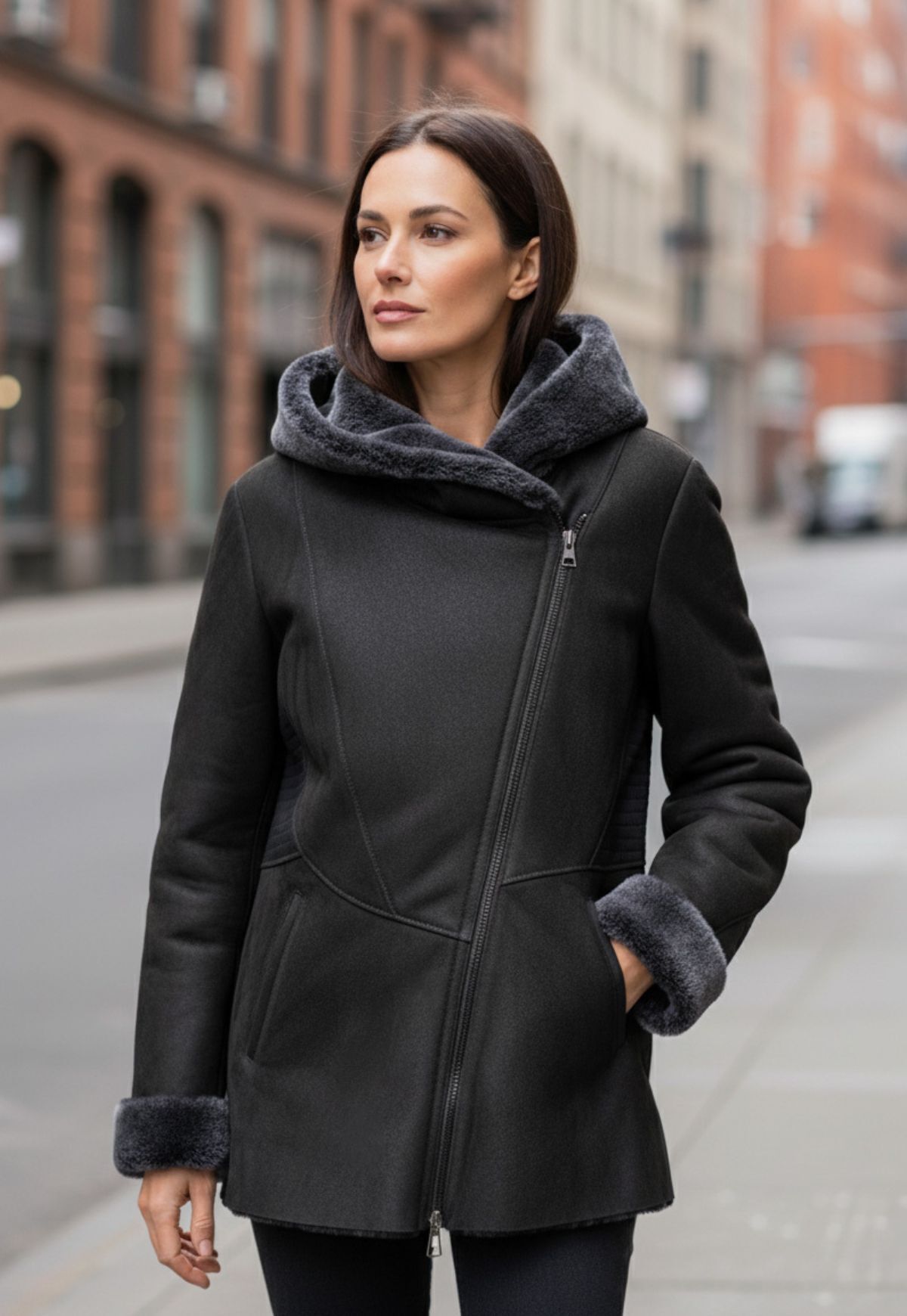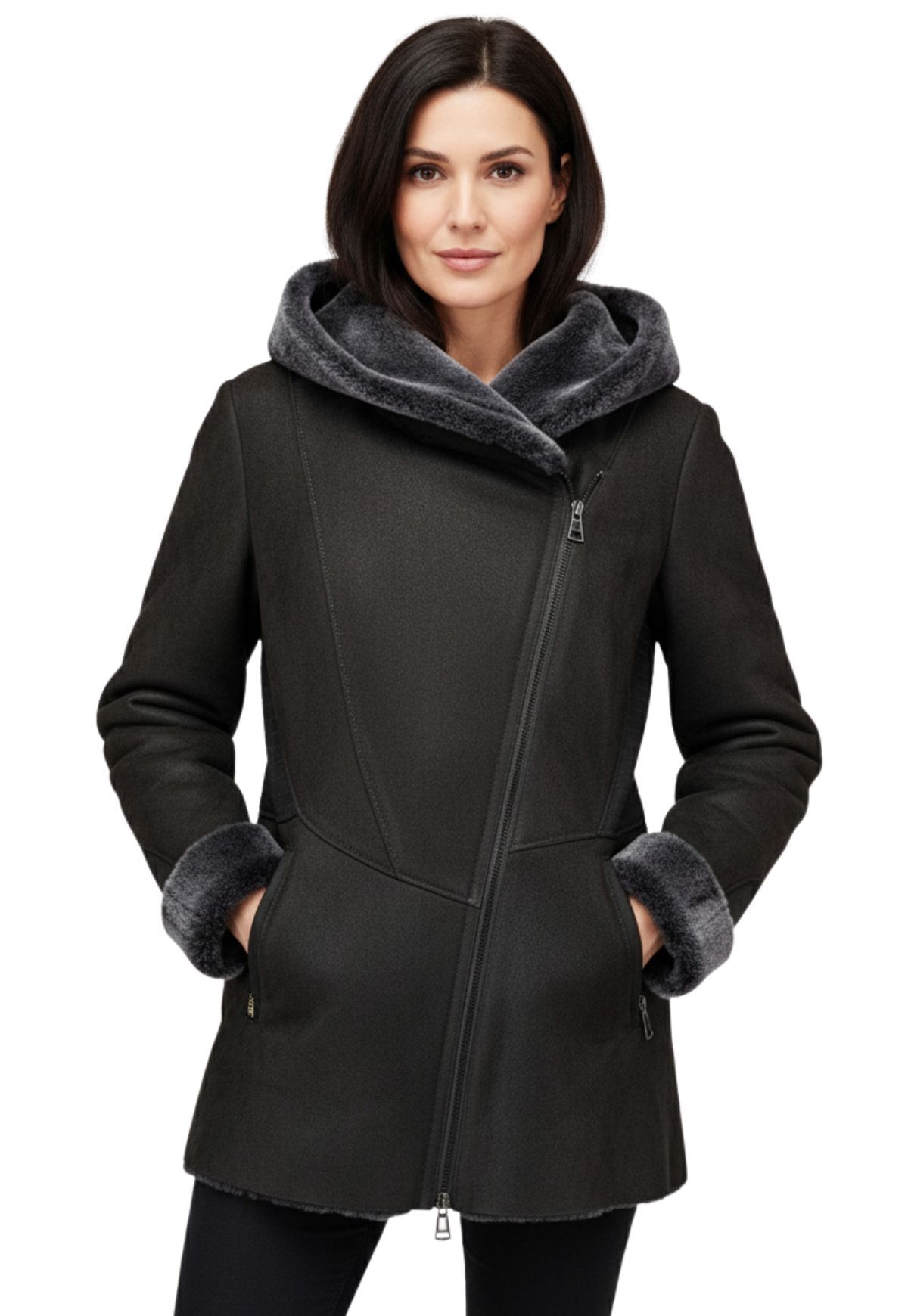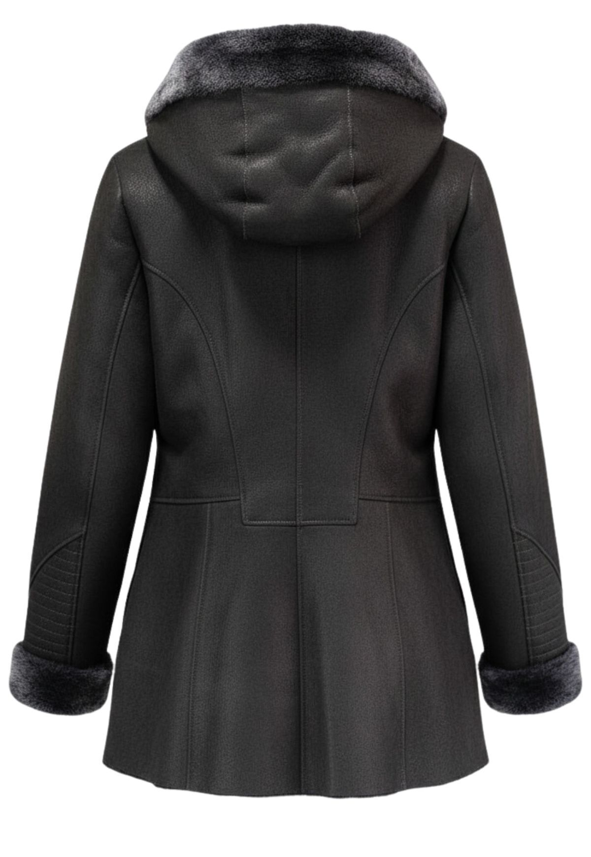 Lammfelljacke mit Kapuze und Ledereinsätzen - natürlich warm & stilvoll