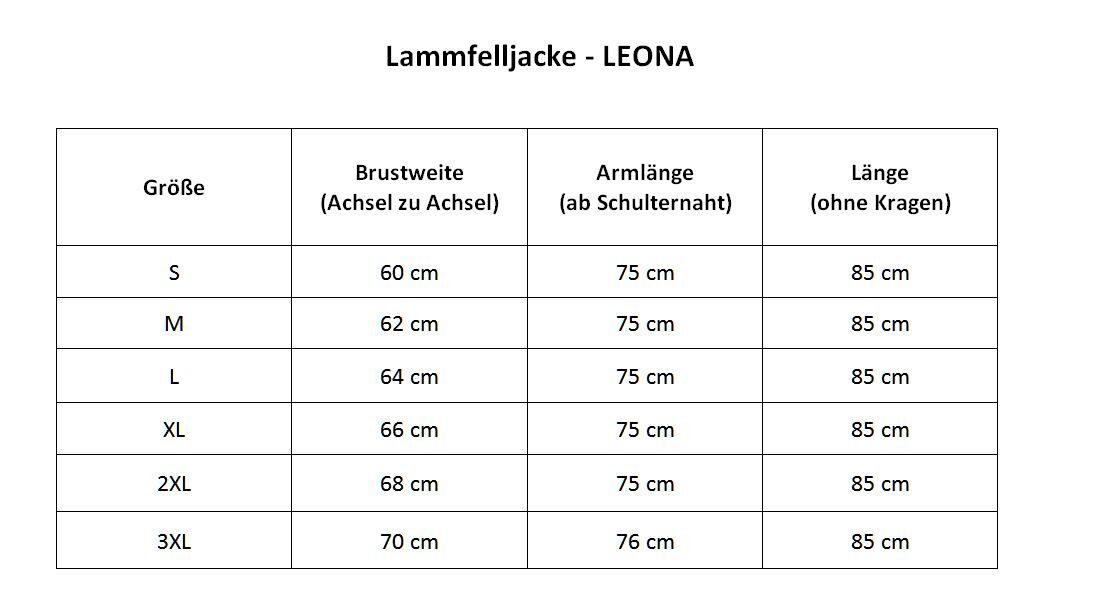 Kauf auf Rechnung möglichBeschreibungDie modische Lammfelljacke Leona verzaubert mit ihrem seidig-weichen Toscana Lammfell, das nicht nur für einen luxuriösen Look sorgt, sondern auch eine gleichmäßige und konstante Wärme bietet. Die klassische Lederfarbe der Jacke ermöglicht eine mühelose Kombination mit jedem Outfit, was sie zu einem vielseitigen Begleiter für jede Gelegenheit macht.