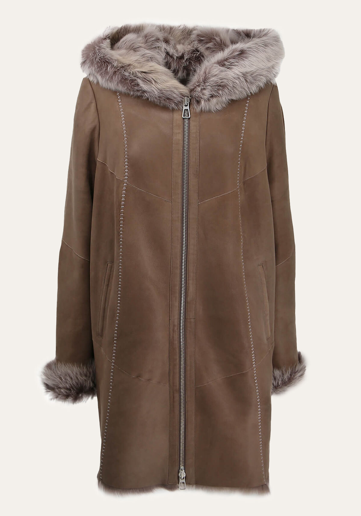 Ein praktischer 2-Wege-Frontreißverschluss und zwei seitliche Taschen runden das Design ab und bieten zusätzlichen Komfort. Die angeschnittene Kapuze ergänzt dieses wunderschöne Modell perfekt und sorgt für einen stilvollen Abschluss. Die Ärmelenden lassen sich bei Bedarf umklappen, sodass Sie die Länge individuell anpassen können. Mit der Lammfelljacke Leona entscheiden Sie sich für ein zeitloses, elegantes Stück, das sowohl Funktionalität als auch modischen Anspruch vereint.