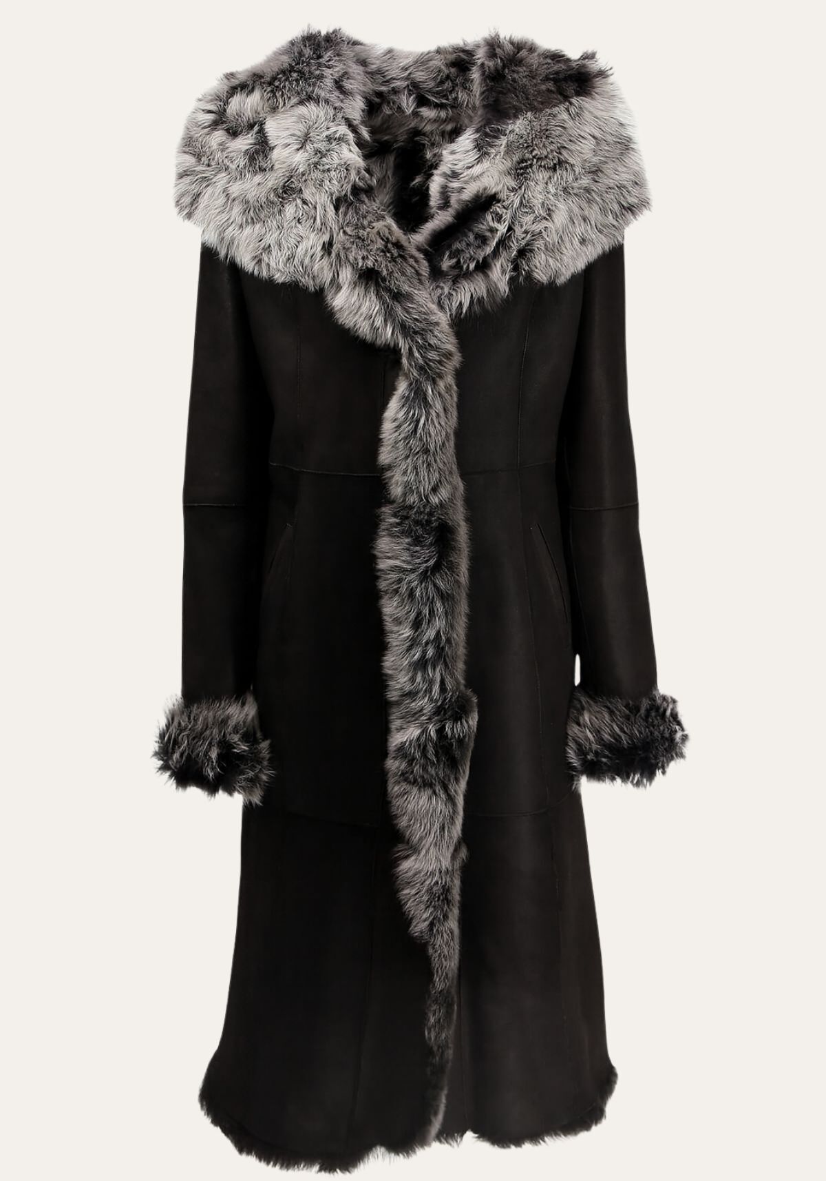 Entdecken Sie den zeitlosen Charme unseres eleganten Damen Lammfellmantels, der aus erstklassigem Toscana Lammfell gefertigt ist. Die integrierte Kapuze verleiht dem Mantel nicht nur einen Hauch von Raffinesse, sondern schützt auch vor kühlem Wetter.Kuschelig und warm