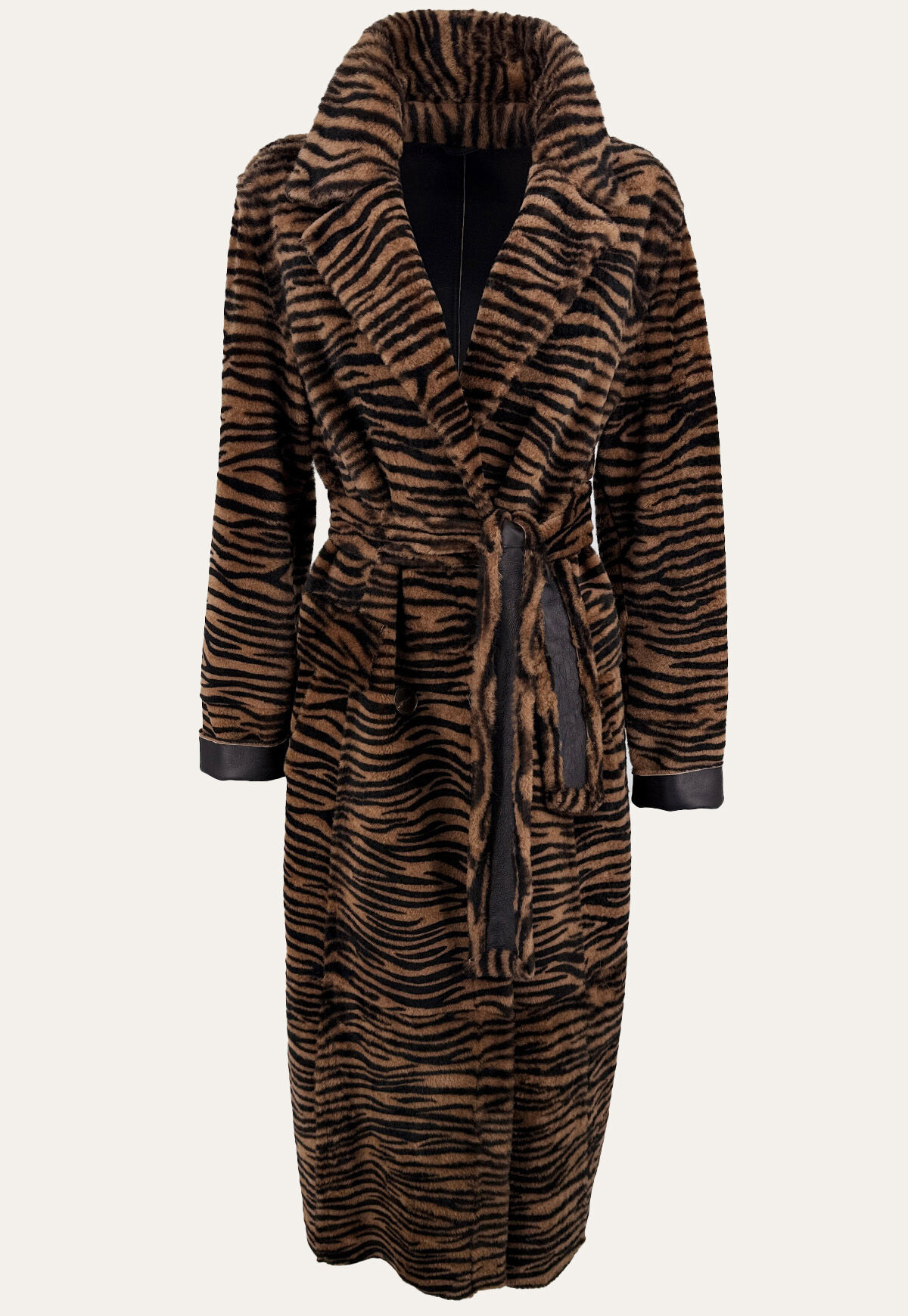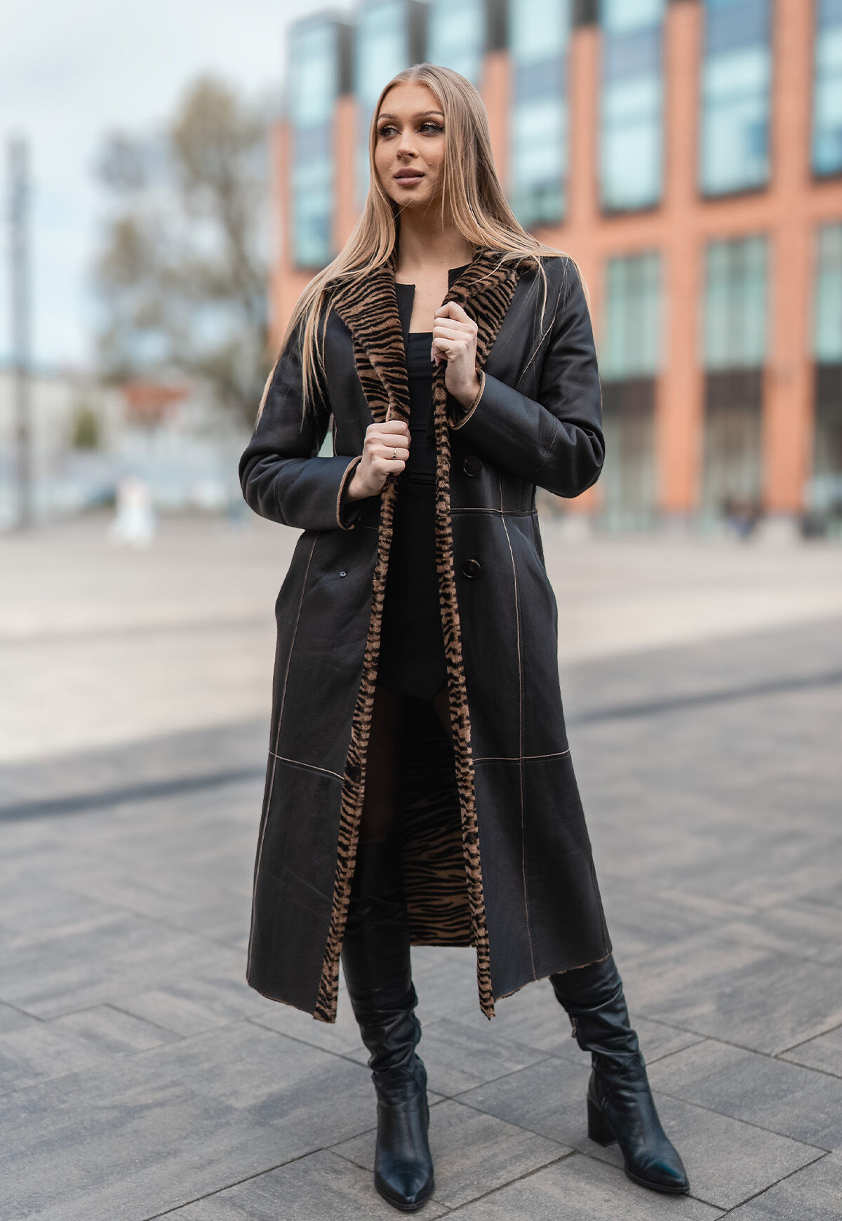 Lammfellmantel Jade zum Wenden im Tiger-Look