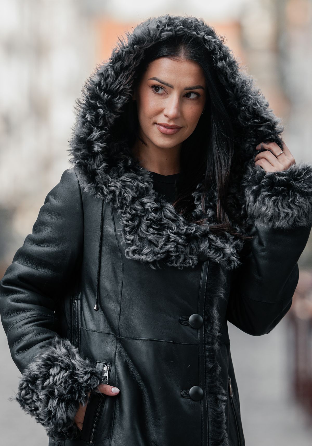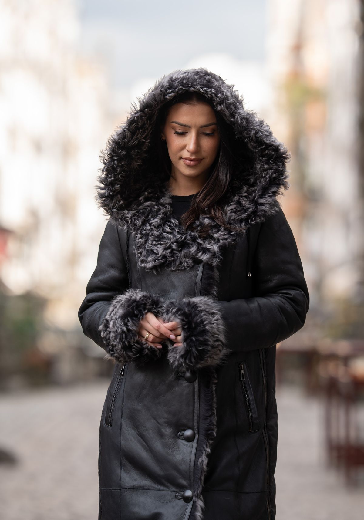 Elegangter Damenmantel aus gelocktem Lammfell - stilvoll und vielseitig