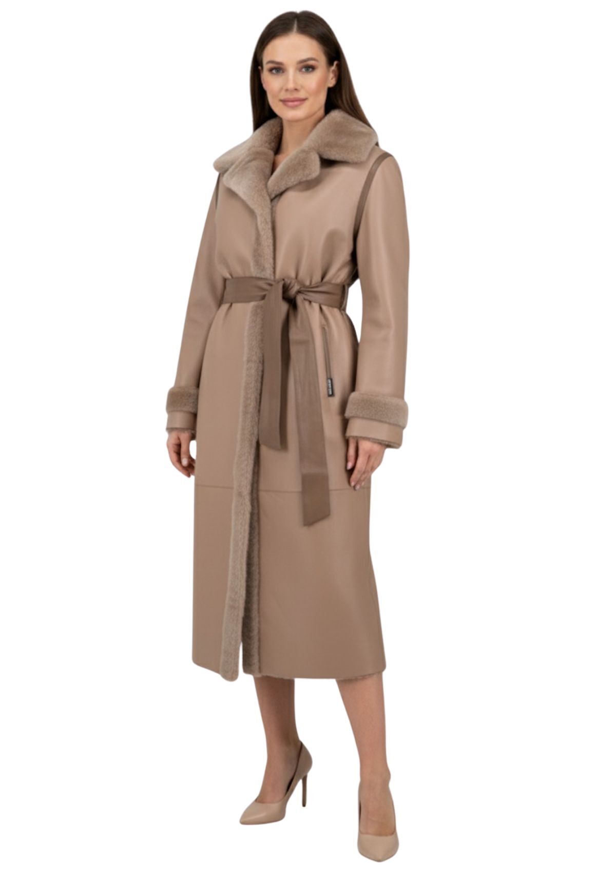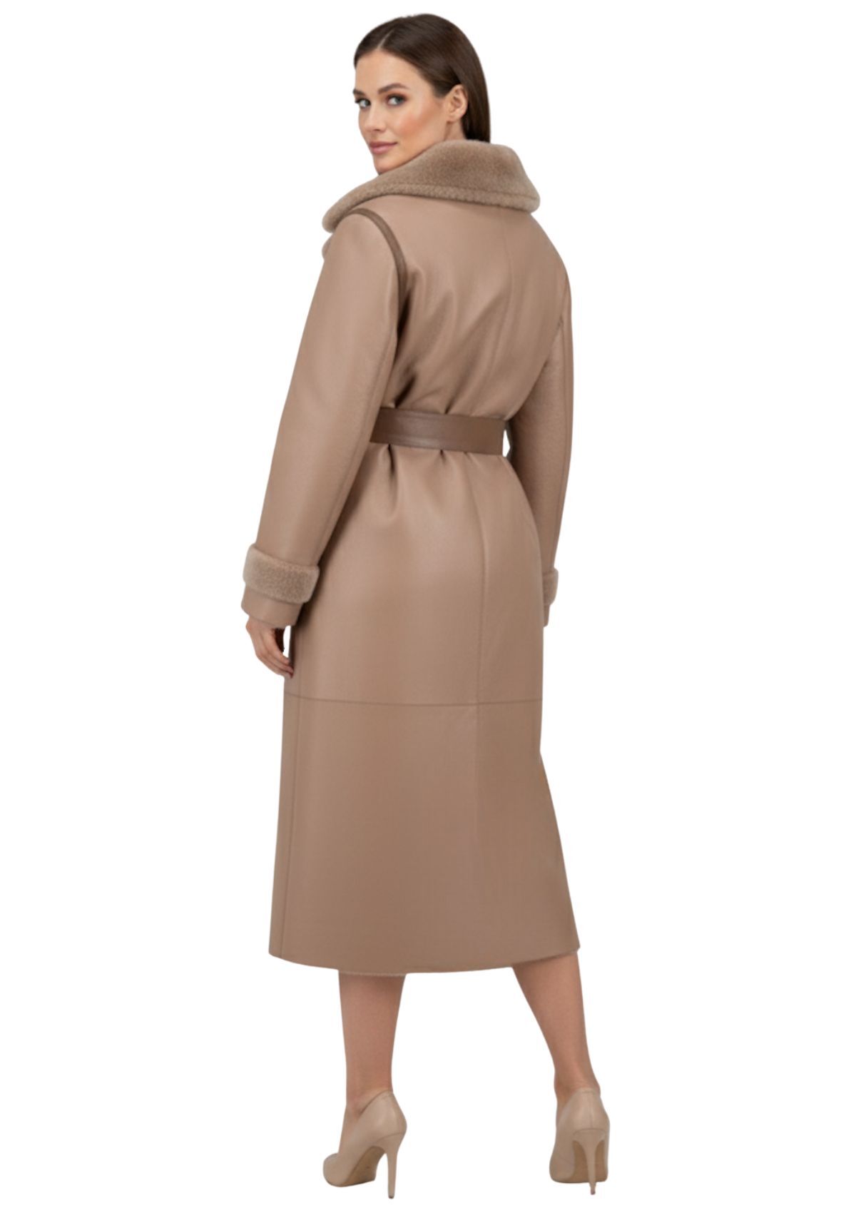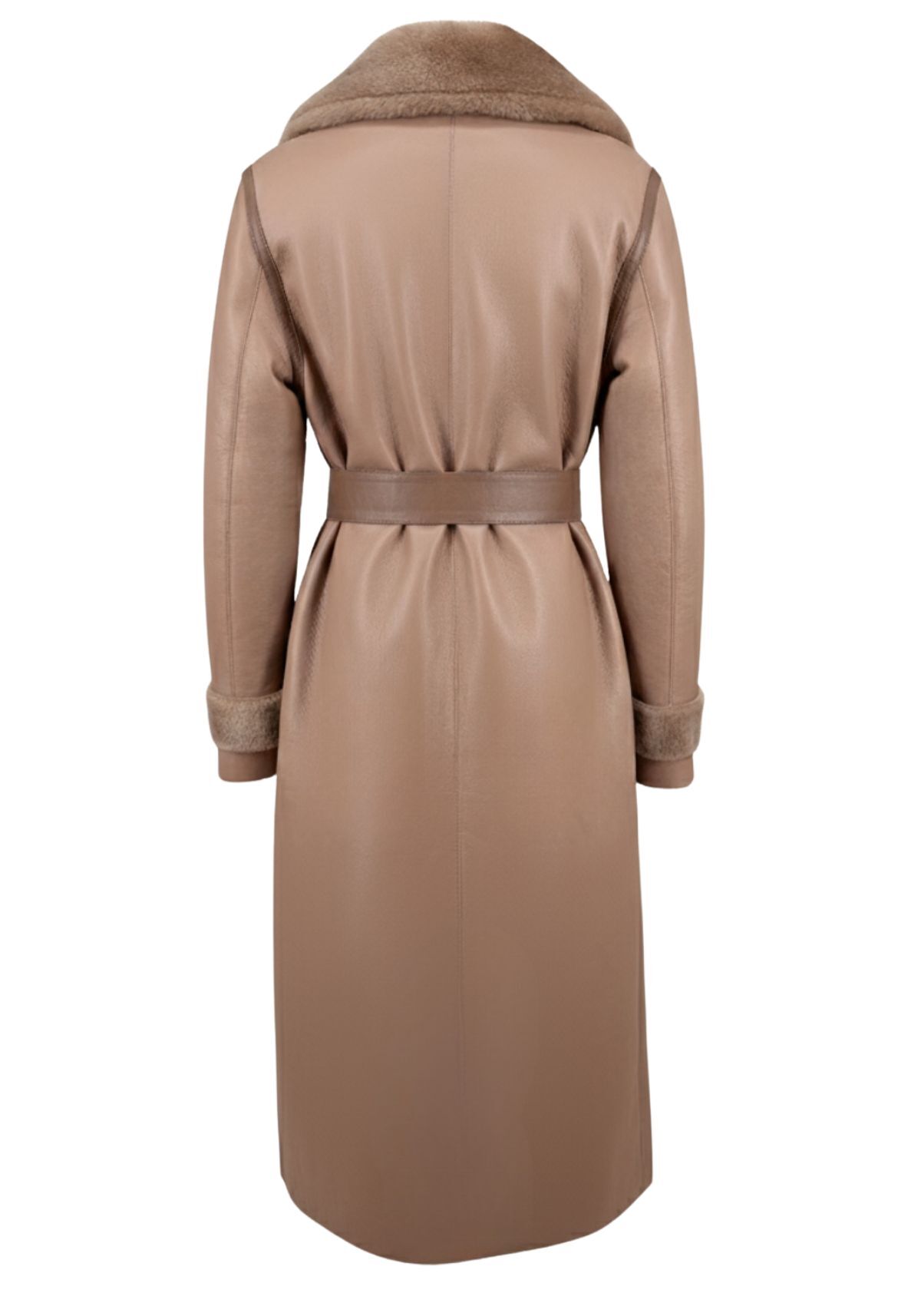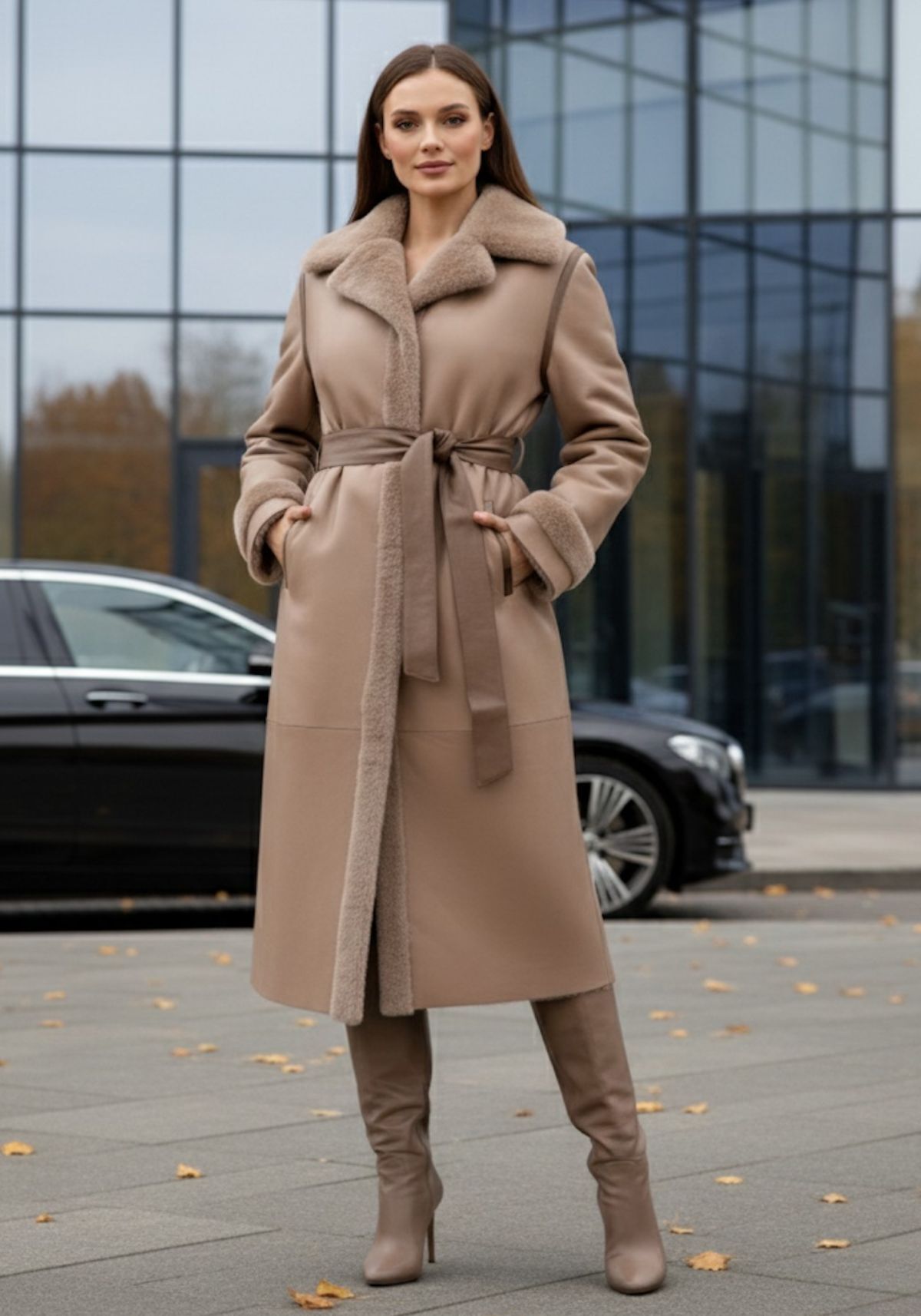 Der warme Beige-Ton unterstreicht die natürliche Schönheit des Lammfells und macht diesen Mantel zu einem vielseitigen Begleiter für anspruchsvolle Frauen, die Wert auf Stil, Qualität und Komfort legen.