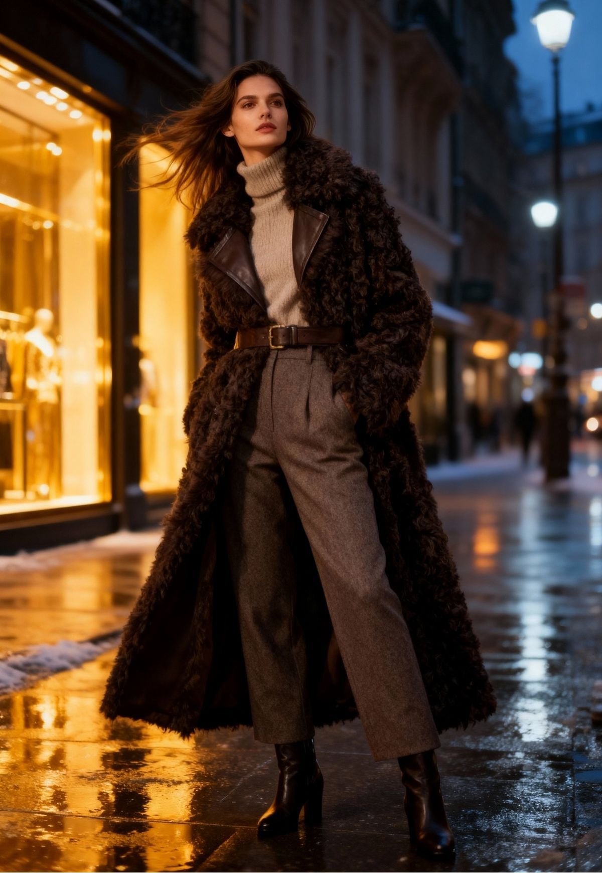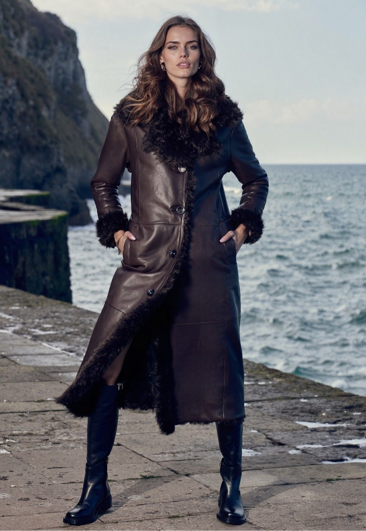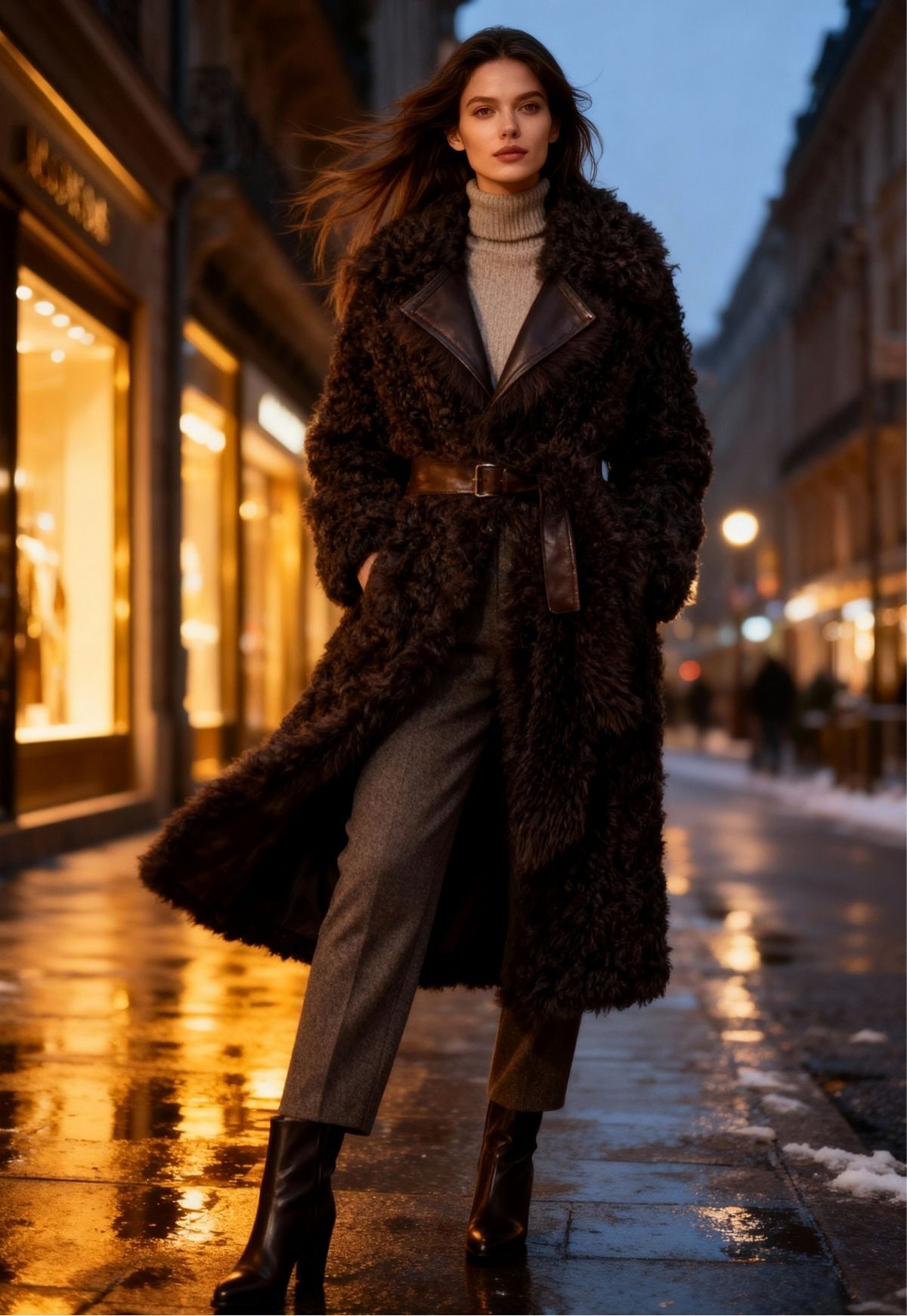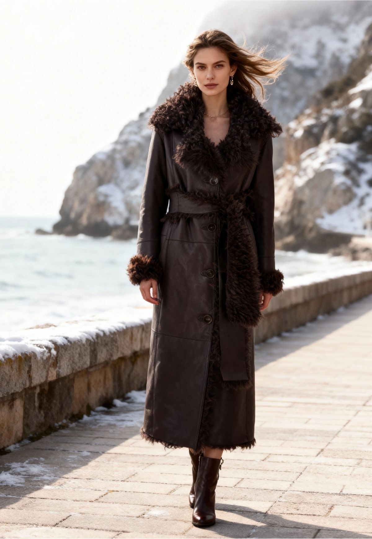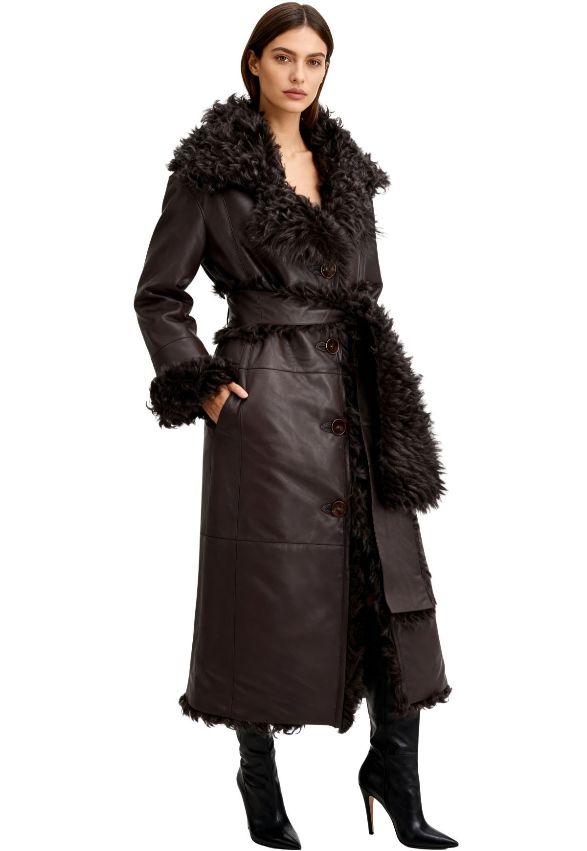 Ein Meisterstück feinster Handwerkskunst: Der wendbare Mantel aus edlem Curly Lammfell vereint luxuriöse Leichtigkeit mit unvergleichlicher Wärme. In tiefem Dunkelbraun gehalten, präsentiert er zwei stilvolle Facetten – glattes, geschmeidiges Nappaleder auf der einen Seite, und natürlich gewelltes Lammfell auf der anderen. So lässt sich der Look mühelos variieren, von urbaner Eleganz bis hin zu lässigem Chic.