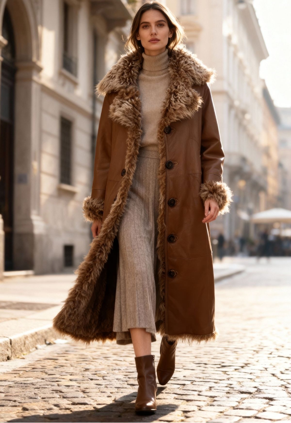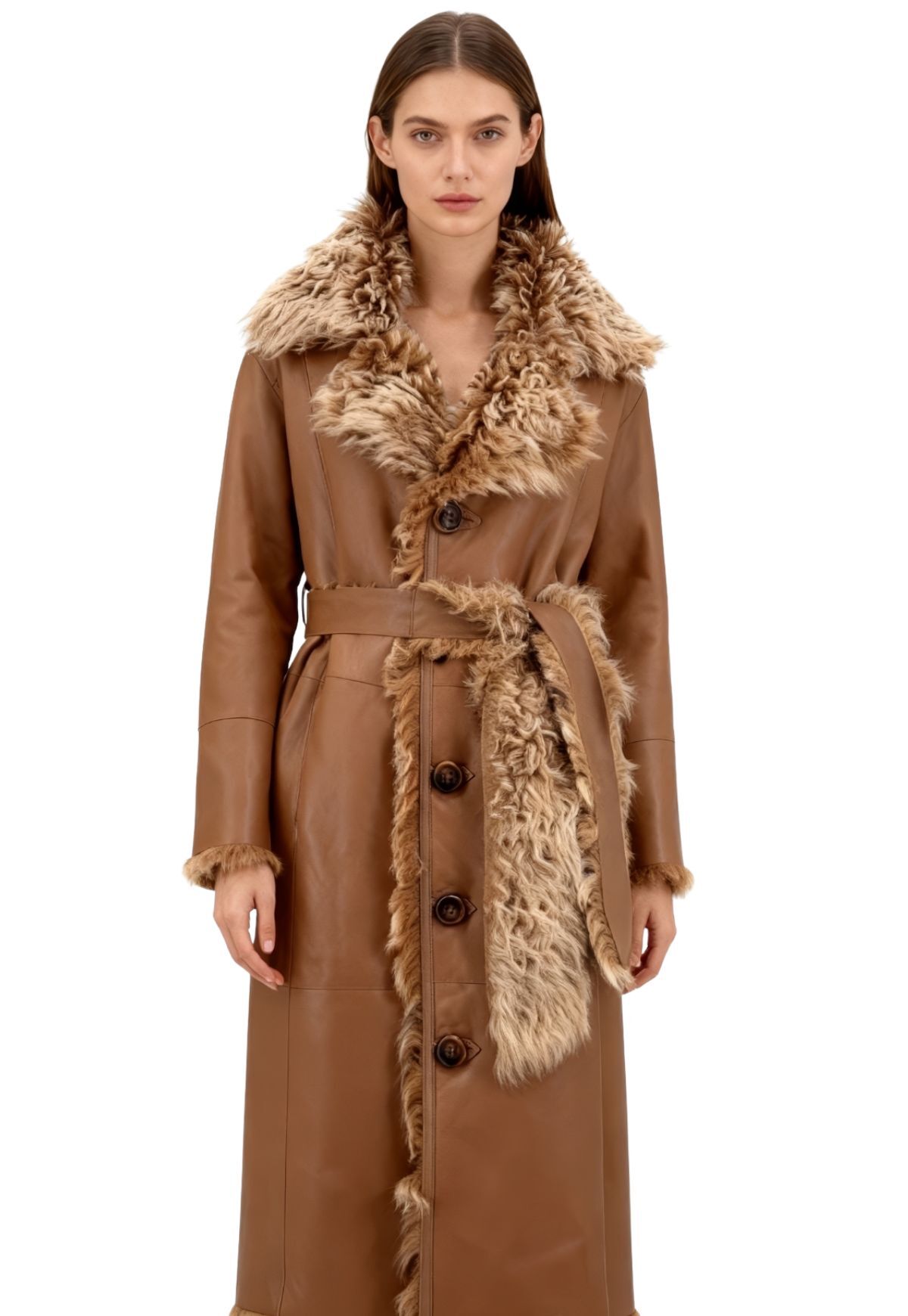 Ein Meisterstück feinster Handwerkskunst: Der wendbare Mantel aus edlem Curly Lammfell vereint luxuriöse Leichtigkeit mit unvergleichlicher Wärme. In einem schönen Beige gehalten, präsentiert er zwei stilvolle Facetten – glattes, geschmeidiges Nappaleder auf der einen Seite, und natürlich gewelltes Lammfell auf der anderen. So lässt sich der Look mühelos variieren, von urbaner Eleganz bis hin zu lässigem Chic.