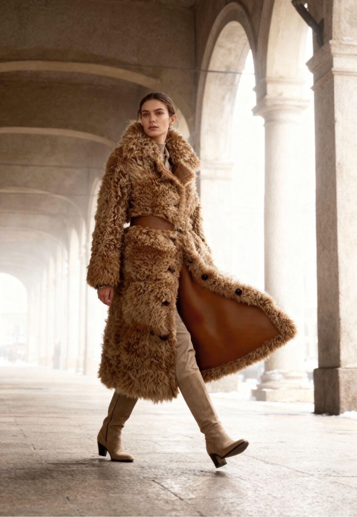 Besonders weich & anschmiegsam: Das feine Curly-Fell sorgt für ein luxuriöses Tragegefühl auf der Haut und verleiht dem Mantel seine charakteristische, voluminöse Struktur.