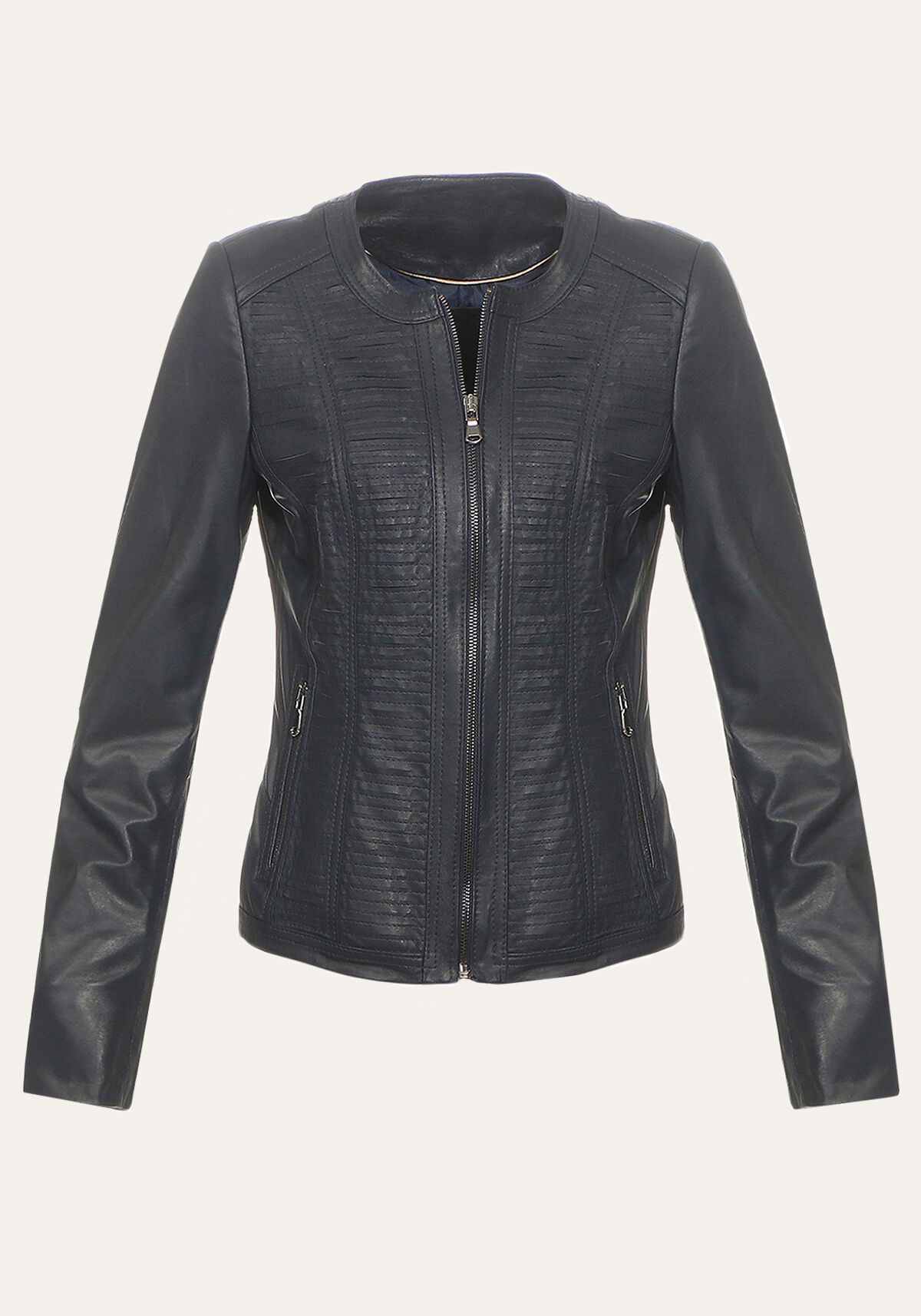 - die querverarbeitenden Lederstreifen verleihen der Jacke einen sportlichen Look