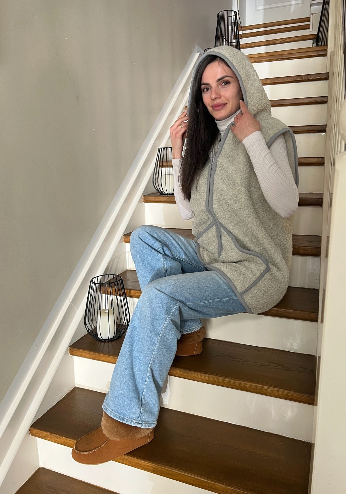 Kauf auf Rechnung möglichBeschreibung- warme Unisex Weste aus 100% natürlicher Merino Schafwolle mit Kapuze und Reißverschluss