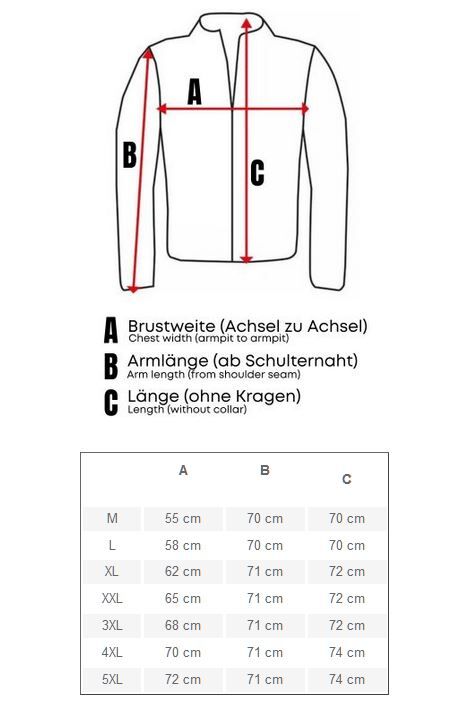 Um die Größentabellen richtig zu verwenden, messen Sie am besten die Maße einer Jacke, welche Ihnen sehr gut passt. Vergleichen Sie dann die Maße Ihrer Jacke mit den Maßen der Größentabelle, so minimieren Sie das Risiko, eine falsche Größe zu bestellen und vermeiden unnötige Rücksendungen. Um Ihre Jacke zu vermessen, breiten Sie diese auf einer ebenen Fläche aus und beginnen Sie mit dem Messen mit Hilfe eines Maßbandes. Dann notieren Sie die Messergebnisse irgendwo und vergleichen Sie sie mit der Größentabelle auf der Website. Jetzt müssen Sie nur noch das passende Modell bestellen.