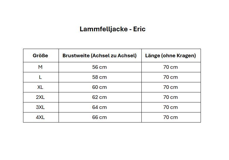 Das Leder, aus dem wir unsere Kleidung herstellen, ist ein Stück ungebrochenes Naturleder. Das bedeutet, dass das Fell, welches Sie in unseren Lammfellmänteln sehen, kein separates Futter ist, das auf das Wildleder geklebt oder genäht wurde. Unser Engagement für Komfort, Stil und Qualität stellt unsere Lammfellkleidung einen Schritt über die meisten Lammfellprodukte, die in Filialen zu finden sind.