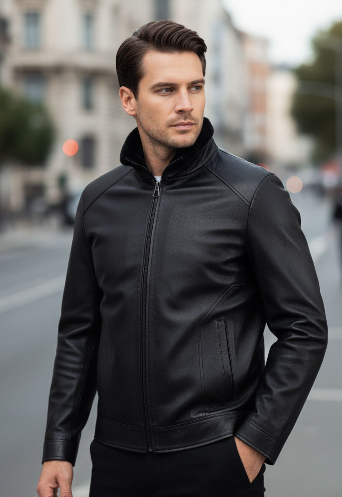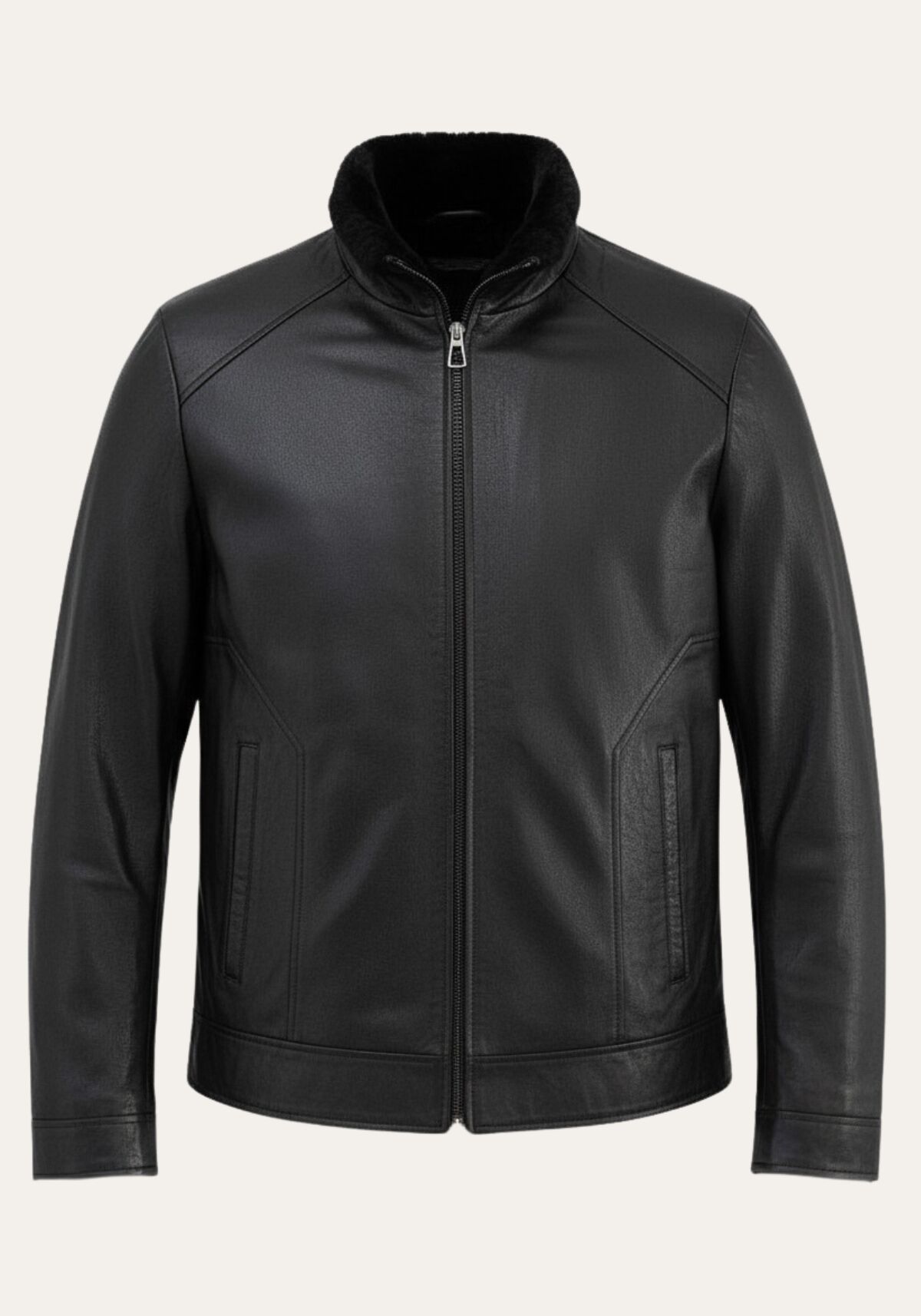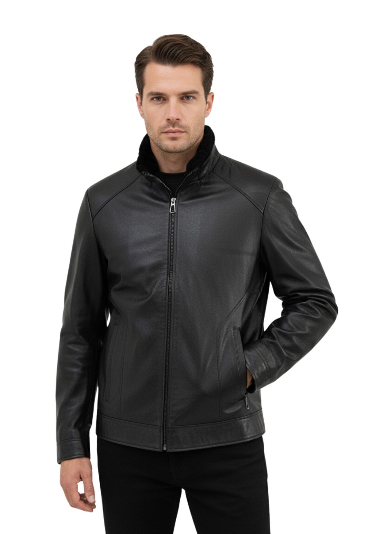 Zeitlose Herren Lammfelljacke in klassischen Schwarz. Diese Jacke vereint hochwertige Verarbeitung mit modernem Design, was sie zum perfekten Begleiter für kalte Tage und besondere Anlässe mach.
