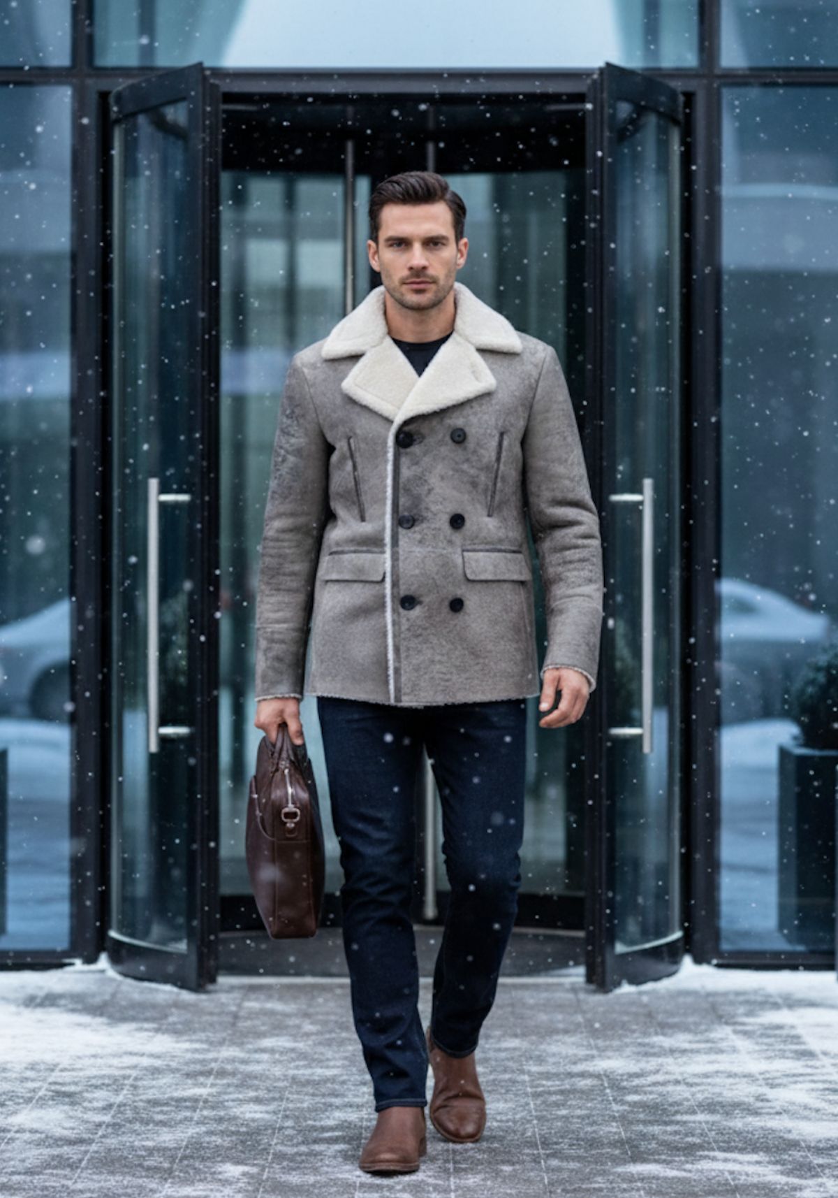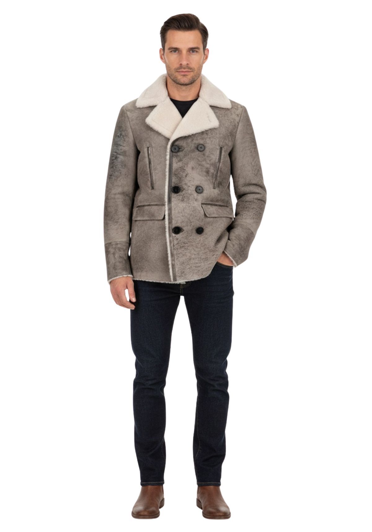 Lammfelljacke Matteo – Handgefertigter Shearling Peacoat