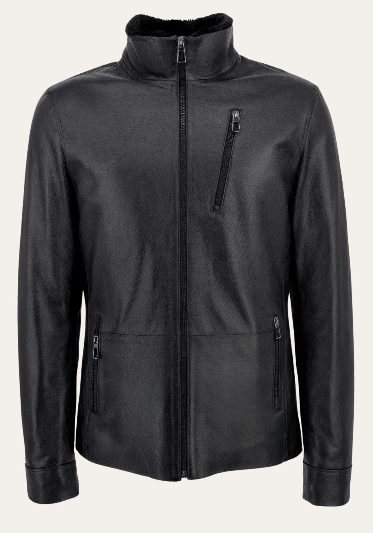 Diese Jacke verbindet raffinierte Eleganz mit einem Hauch sportiver Modernität – ein Meisterwerk aus edlem Shearling-Lammfell, das natürliche Wärme, Leichtigkeit und exklusive Handwerkskunst vereint. Das feine, matt schimmernde Leder auf der Außenseite verleiht dem Modell eine klare, maskuline Linie, während das echte Lammfell an Rücken und Vorderseite angenehm wärmend und atmungsaktiv wirkt.