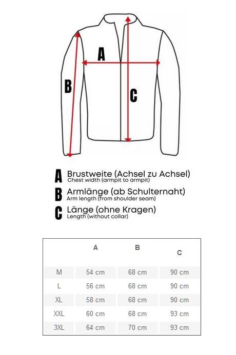 Um die Größentabellen richtig zu verwenden, messen Sie am besten die Maße einer Jacke, welche Ihnen sehr gut passt. Vergleichen Sie dann die Maße Ihrer Jacke mit den Maßen der Größentabelle, so minimieren Sie das Risiko, eine falsche Größe zu bestellen und vermeiden unnötige Rücksendungen. Um Ihre Jacke zu vermessen, breiten Sie diese auf einer ebenen Fläche aus und beginnen Sie mit dem Messen mit Hilfe eines Maßbandes. Dann notieren Sie die Messergebnisse irgendwo und vergleichen Sie sie mit der Größentabelle auf der Website. Jetzt müssen Sie nur noch das passende Modell bestellen.
