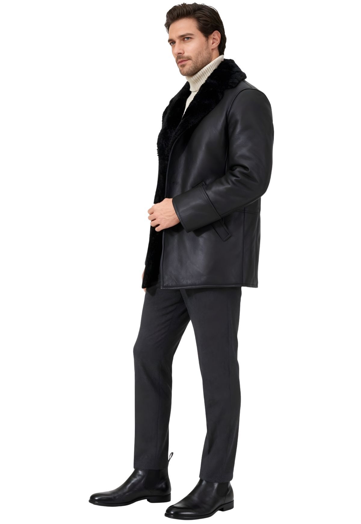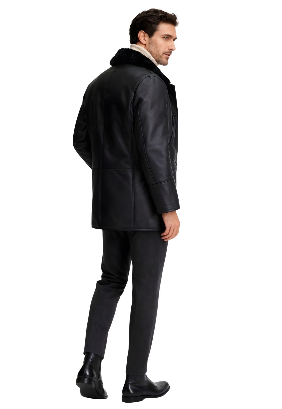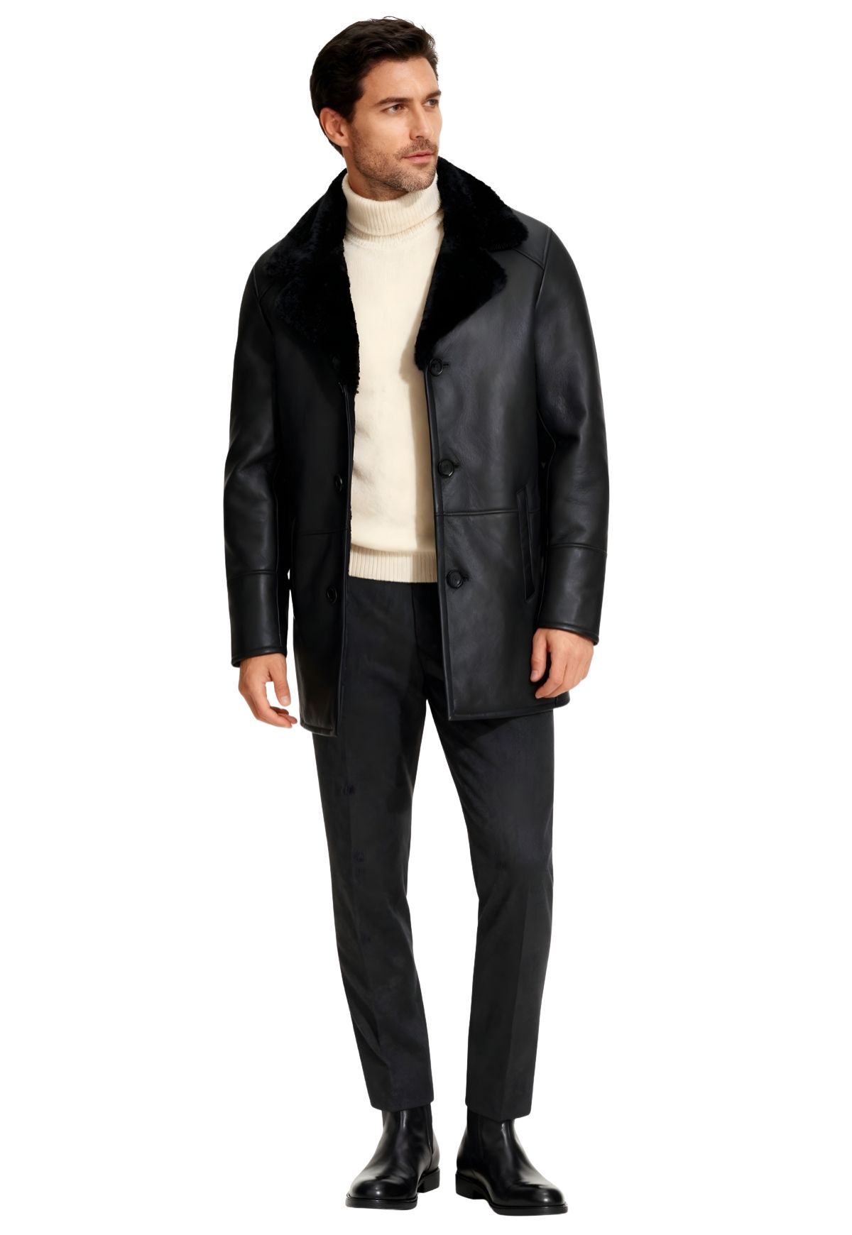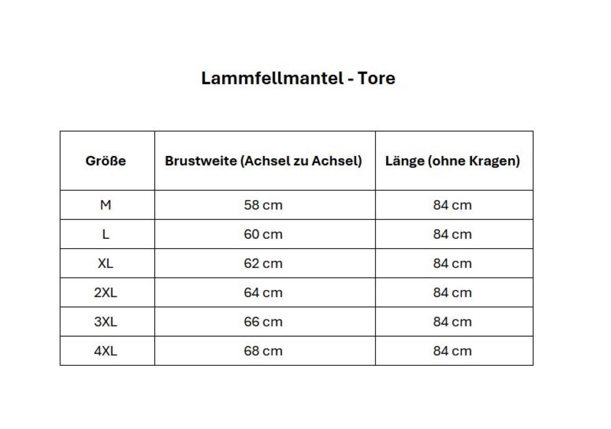 Der elegante Reverskragen betont die hochwertige Lammfell-Qualität und verleiht dem Mantel eine stilvolle Note. Mit seiner klassischen Schnittführung, den vier Knöpfen zum Verschließen und zwei praktischen Seitentaschen vereint der Lammfellmantel Tore Funktionalität und modischen Anspruch auf ideale Weise.