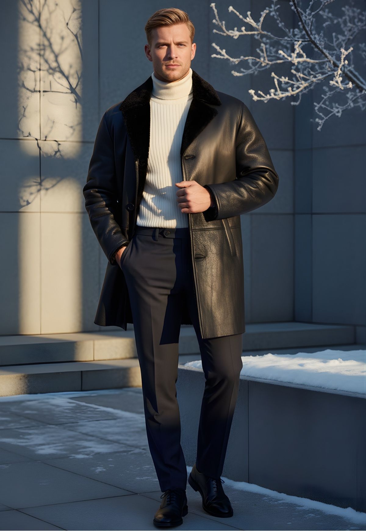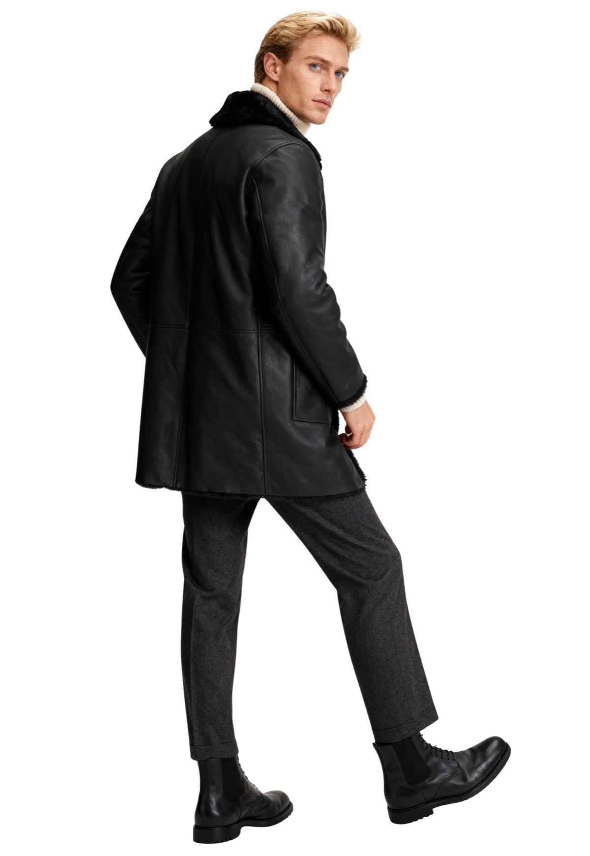 Als Accessoires empfehlen wir unsere Lederschuhe. Die natürlichen Farben harmonieren perfekt mit unseren Mänteln und Lammfelljacken.