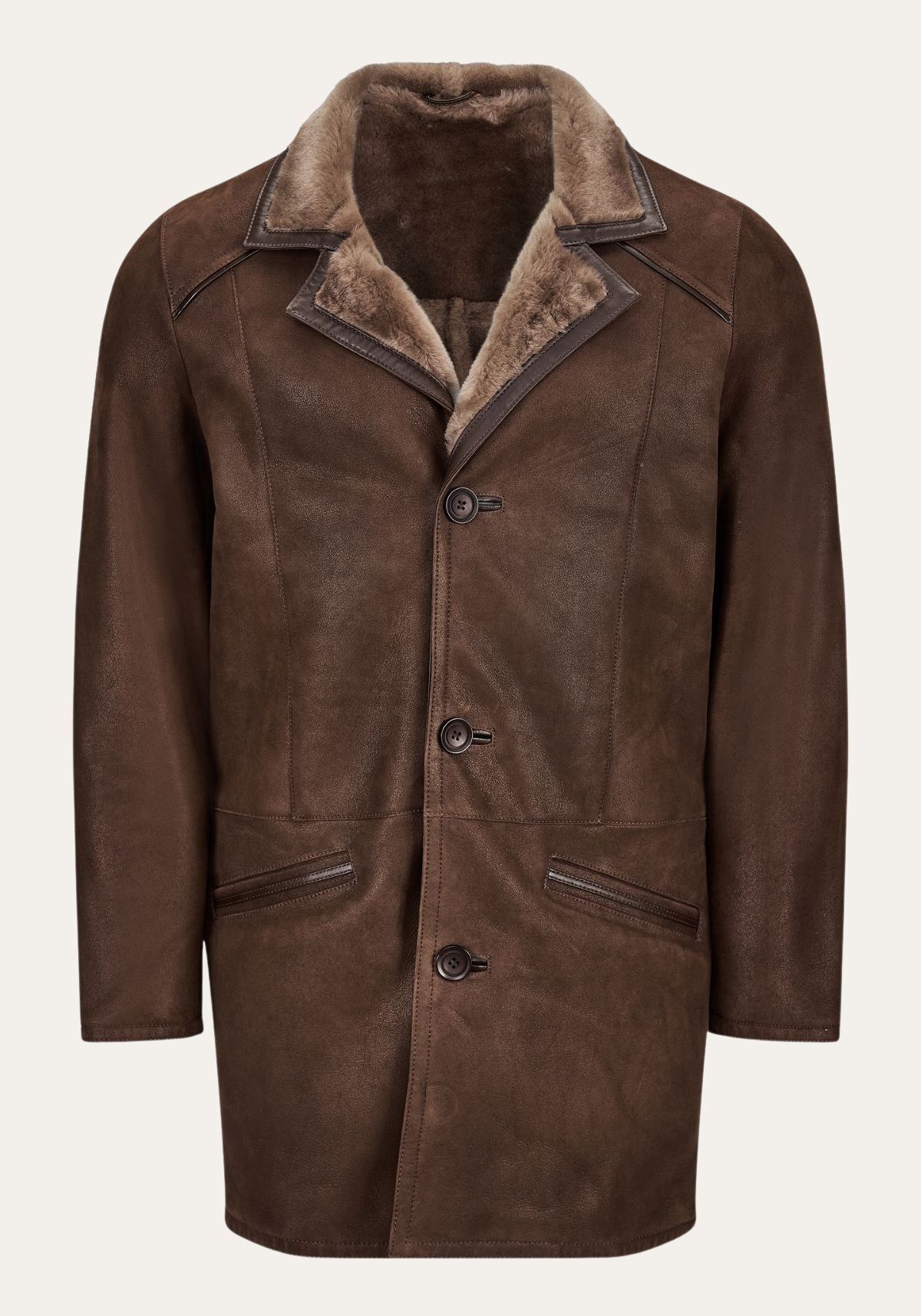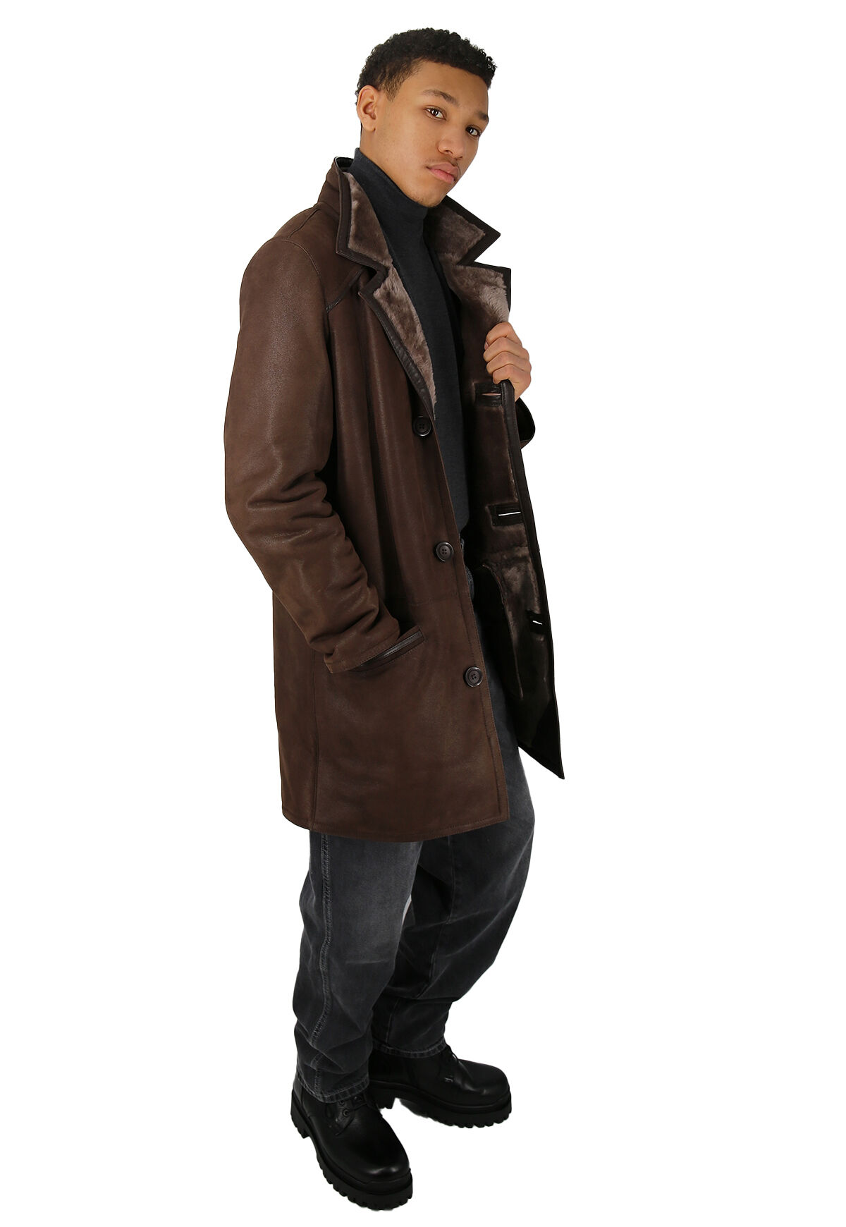 Die umschlagbaren Ärmel und der modische Umlegekragen bringen die Qualität des Lammfells besonders zur Geltung. Mit seiner klassischen Schnittführung, den vier Knöpfen zum Verschließen, zwei seitlichen Taschen und zwei Innentaschen bietet der Mantel sowohl Stil als auch Funktionalität.