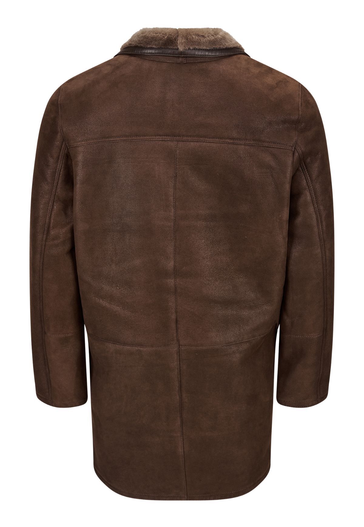 Die Außenseite des Mantels besteht aus feinstem Veloursleder, das sich durch einen besonders soften Griff auszeichnet und gleichzeitig robust ist. Im Inneren sorgt das dicht angewachsene Merino-Lammfell für ein kuscheliges Ambiente und ein äußerst angenehmes Tragegefühl.