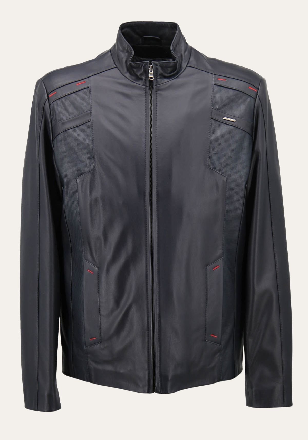 Kauf auf Rechnung möglichBeschreibung- Sportliche Herren Lederjacke, hergestellt aus handschuhweichem Lammnappa Leder in Dunkelblau