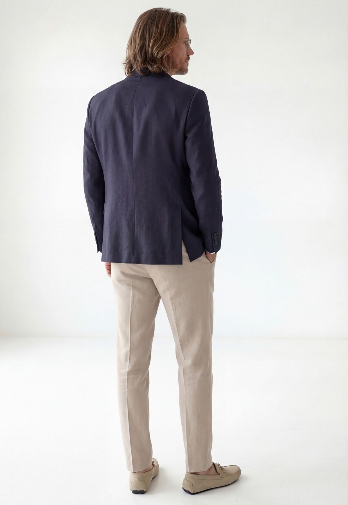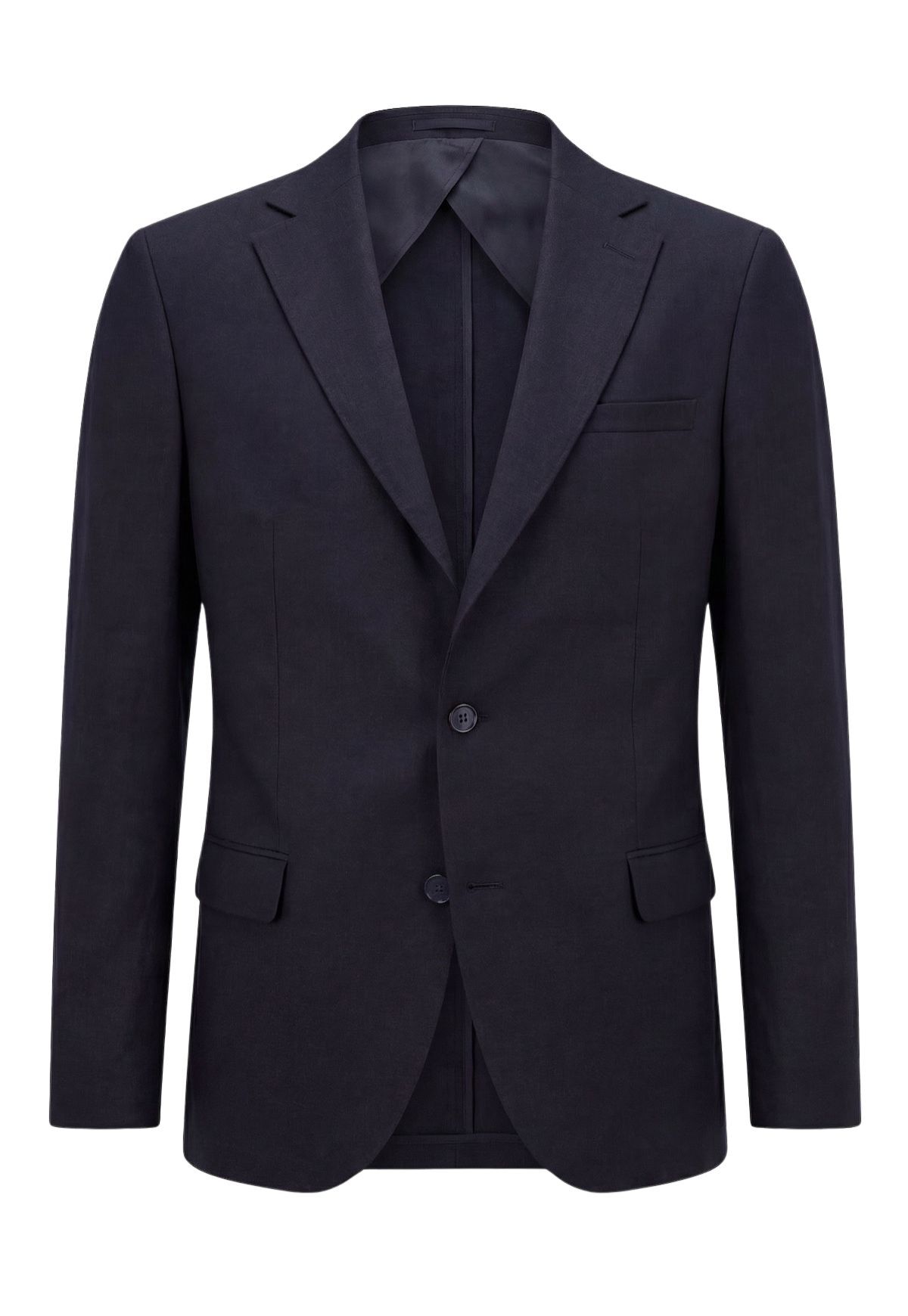 Das hochwertige Naturleinen ist atmungsaktiv, temperaturregulierend und angenehm leicht – ideal für warme Tage und gepflegte Auftritte. Der moderne, leicht taillierte Schnitt sorgt für eine schlanke Silhouette, während klassische Details wie das fallende Revers, die dezenten Pattentaschen und die hochwertige Knopfleiste den eleganten Anspruch betonen.