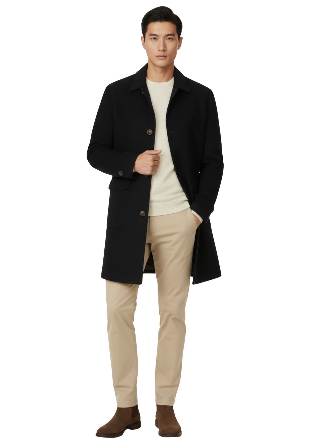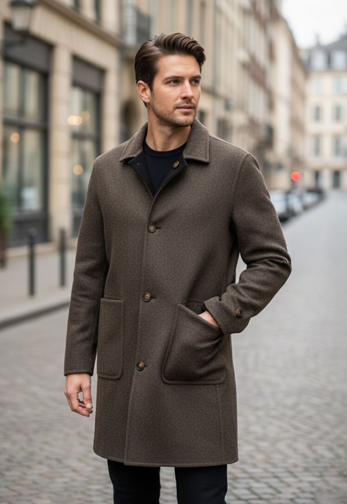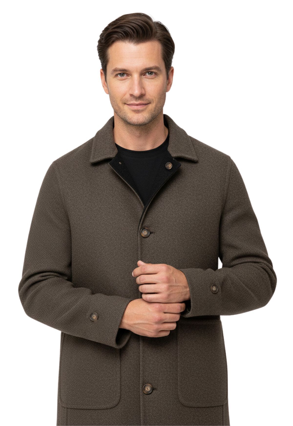 Kauf auf Rechnung möglichBeschreibungErleben Sie luxuriösen Komfort mit unserem elgeganten Wendemantel, der speziell für den anspruchsvollen Mann entwickelt wurde. Hergestellt aus einer hochwertigen Mischung, bestehend aus 30% Kaschmir und 70% Wolle, bietet dieser Mantel nicht nur eine unvergleichliche Weichheit, sondern auch eine natürliche Wärme, die an kühlen Tagen angenehm umhüllt.