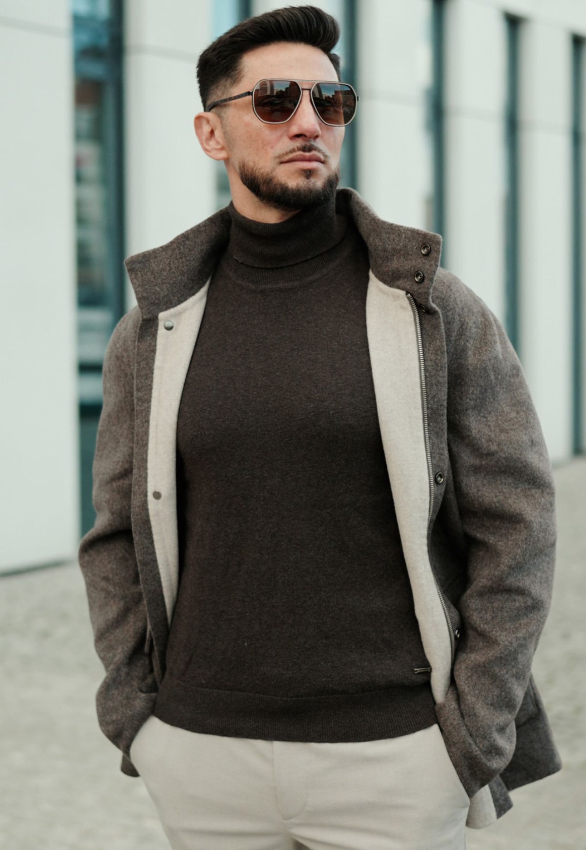 Entdecken Sie unsere schicke Herren Wolljacke - ein zeitloses Kleidungsstück, das Eleganz und Komfort perfekt vereint.