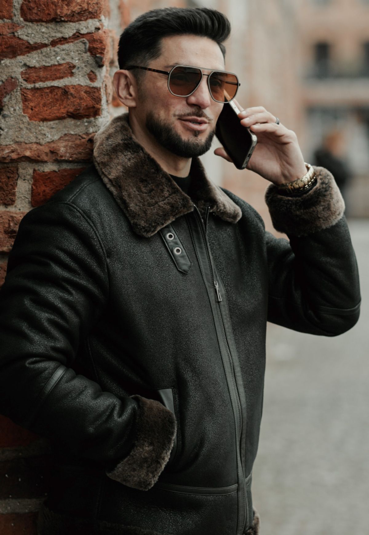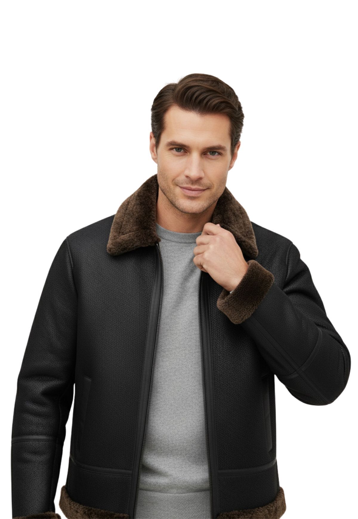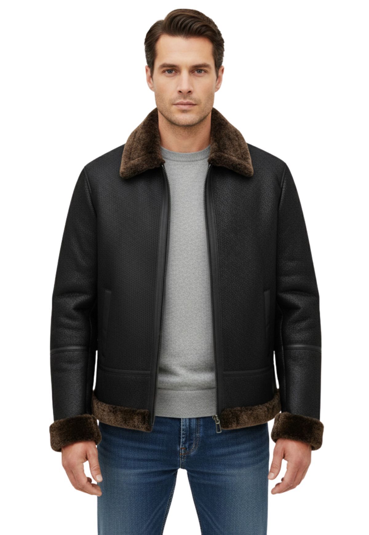 This men's jacket made of 100% luxurious lambskin leather is the perfect choice for men who appreciate sophisticated style and comfort. Made of black leather on the outside and soft brown fur on the inside, the jacket provides an elegant look and comfort even on cold days.