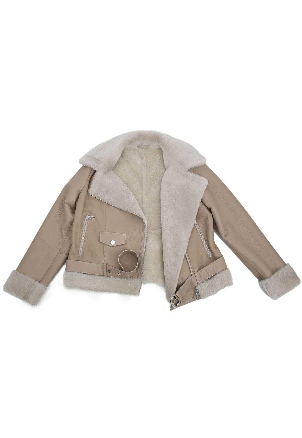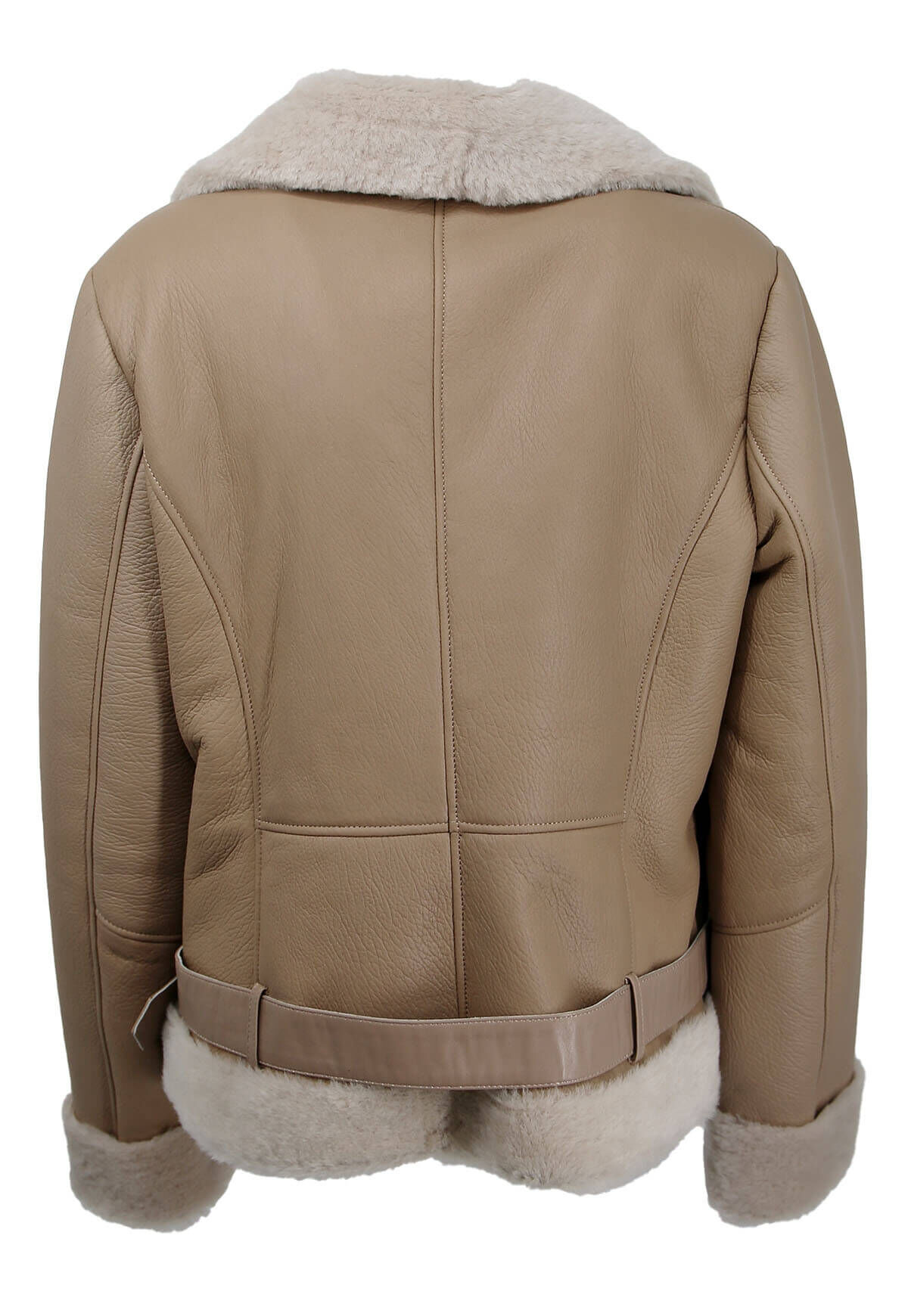 The grown merino lambskin inside and the soft, robust leather outside provide even and constant warmth without sweating. The cozy fur on the cuffs and hem shows off the high-quality interior. The half belt and decorative zipper on the chest complete the style. With a slanted front zipper and two zipped side pockets.