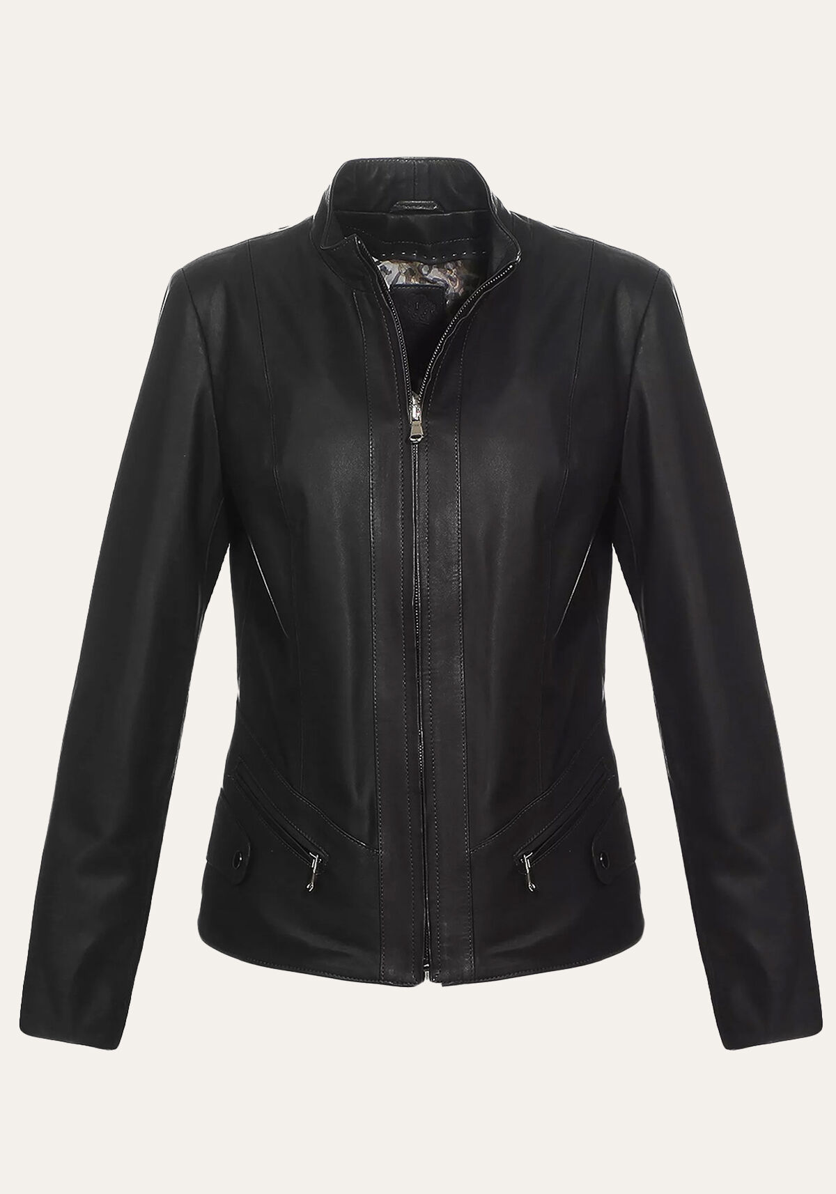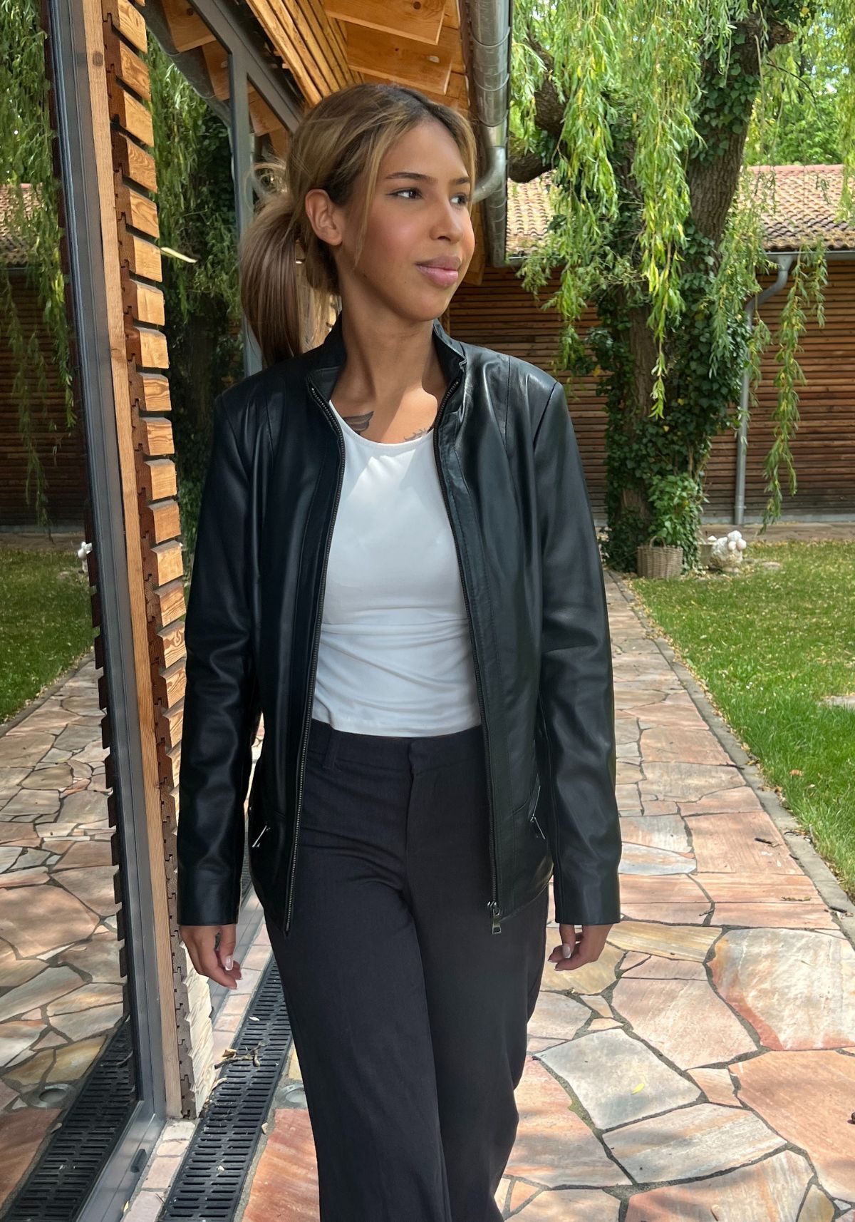 - Fitted cut and the elasticity of the natural leather emphasize the female figure.