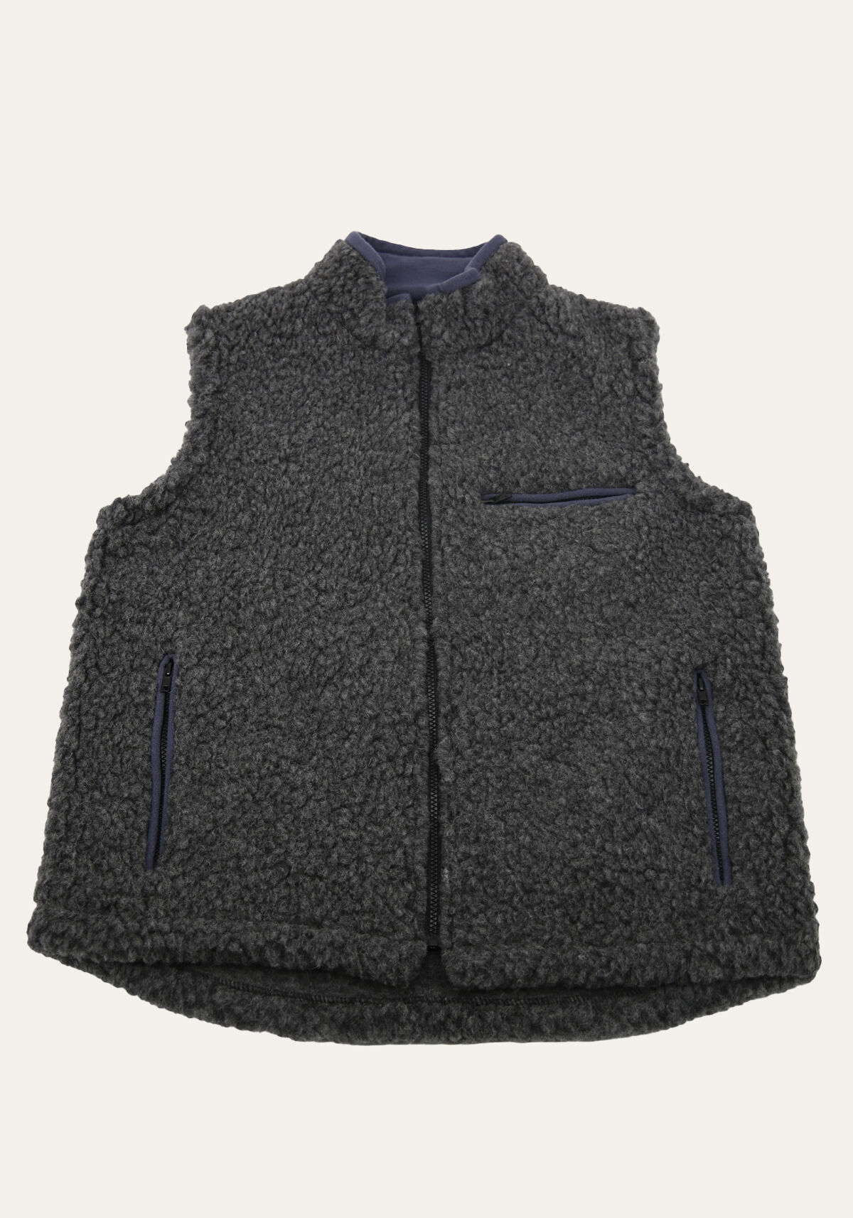 - Vest has sewn-on, practical pockets and a zipper.