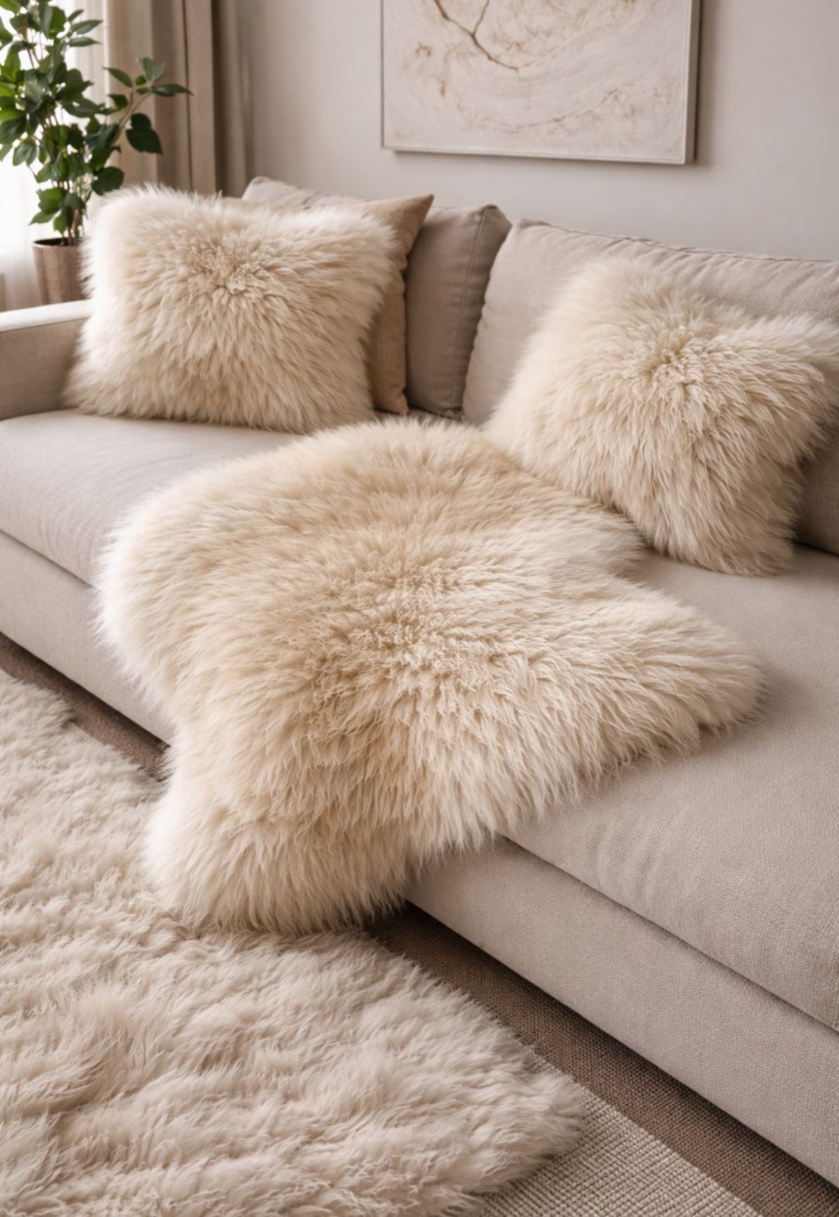 Ob als stilvolle Stuhlauflage, gemütliche Couchauflage, dekorativer Teppichläufer oder luxuriöser Akzent im Schlafzimmer – das natürliche Beige fügt sich harmonisch in nahezu jeden Einrichtungsstil ein, von modern bis klassisch.
