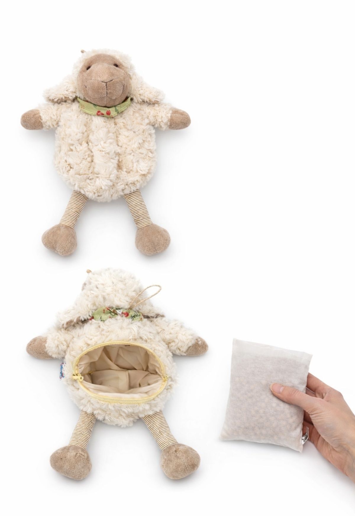 Das niedliche Schäfchen Lotti, gefüllt mit Kirschkernen, sorgt für behagliche Wärme. Die beigefügten Kirschkernsäckchen können in der Mikrowelle oder im Backofen erwärmt werden. Der äußere Bezug ist mit einem hochwertigen Reißverschluss versehen um die Füllung zu entfernen, so dass das Schäfchen einfach von Hand gewaschen werden kann.