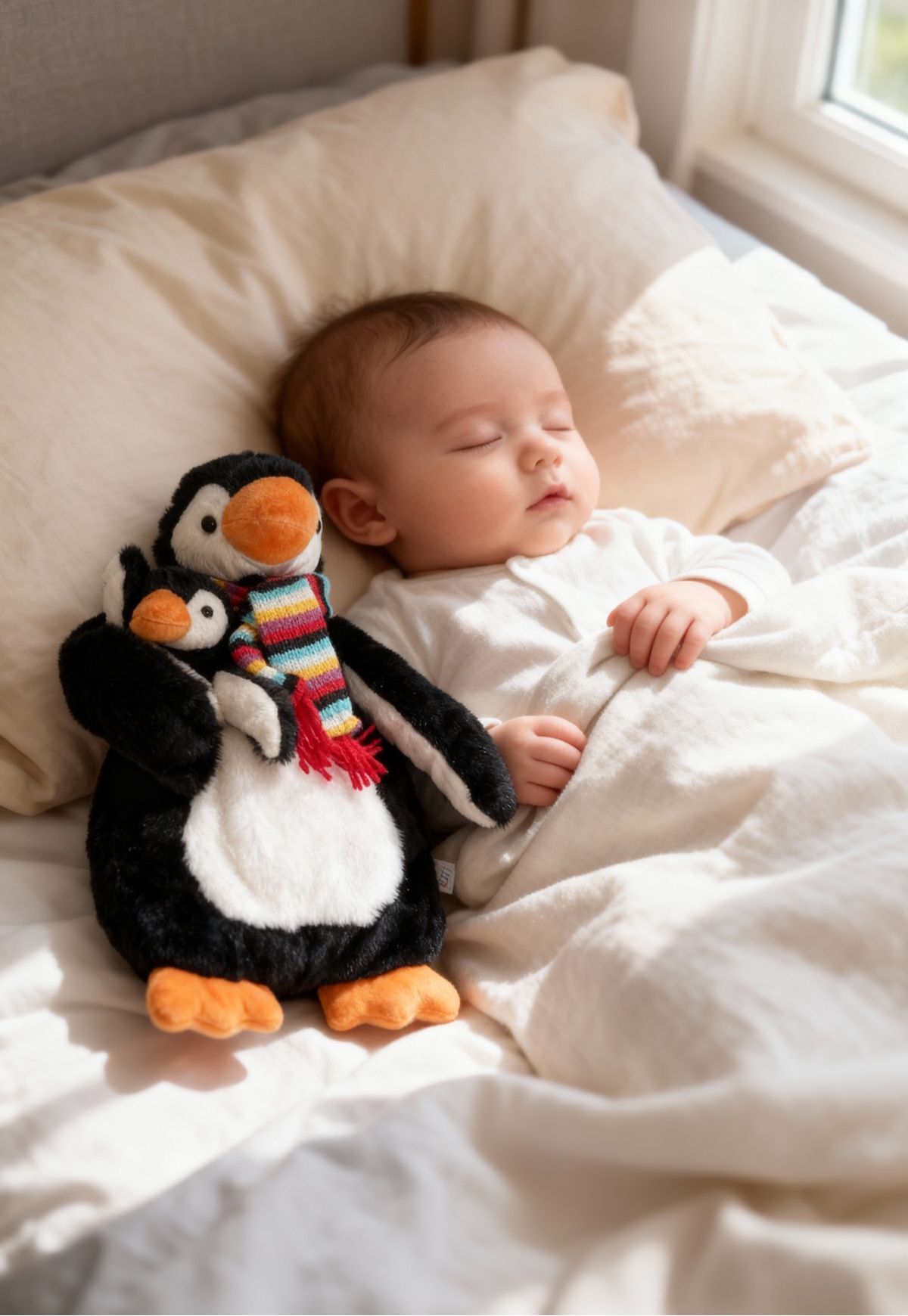 Unsere liebevolle Kuschelfamilie „Pinguin James & Baby Jamie“ vereint gleich zwei Wärmespender in einem! Während Mama oder Papa James eine 0,8 Liter Sänger® Gummi-Wärmflasche im Inneren trägt, sorgt das kleine Baby Jamie mit seiner Kirschkernfüllung für natürliche, sanfte Wärme – perfekt zum Kuscheln, Trösten und Wohlfühlen.