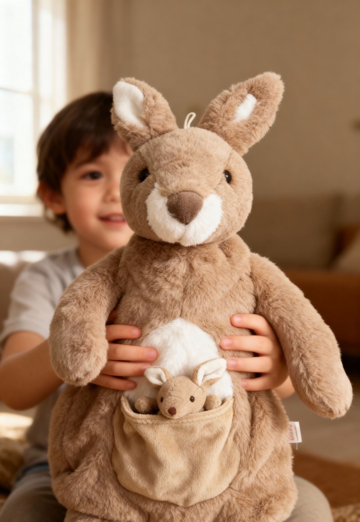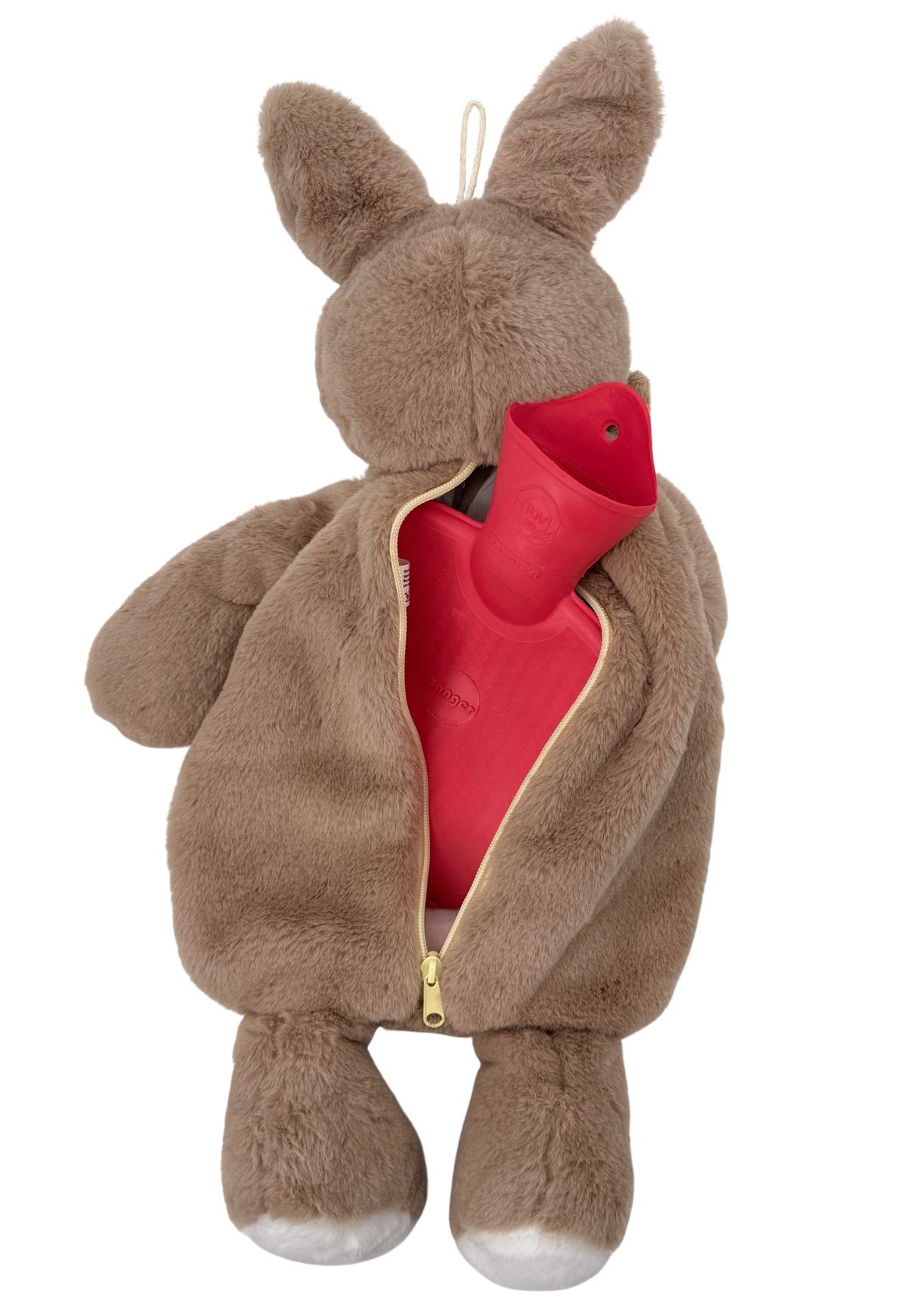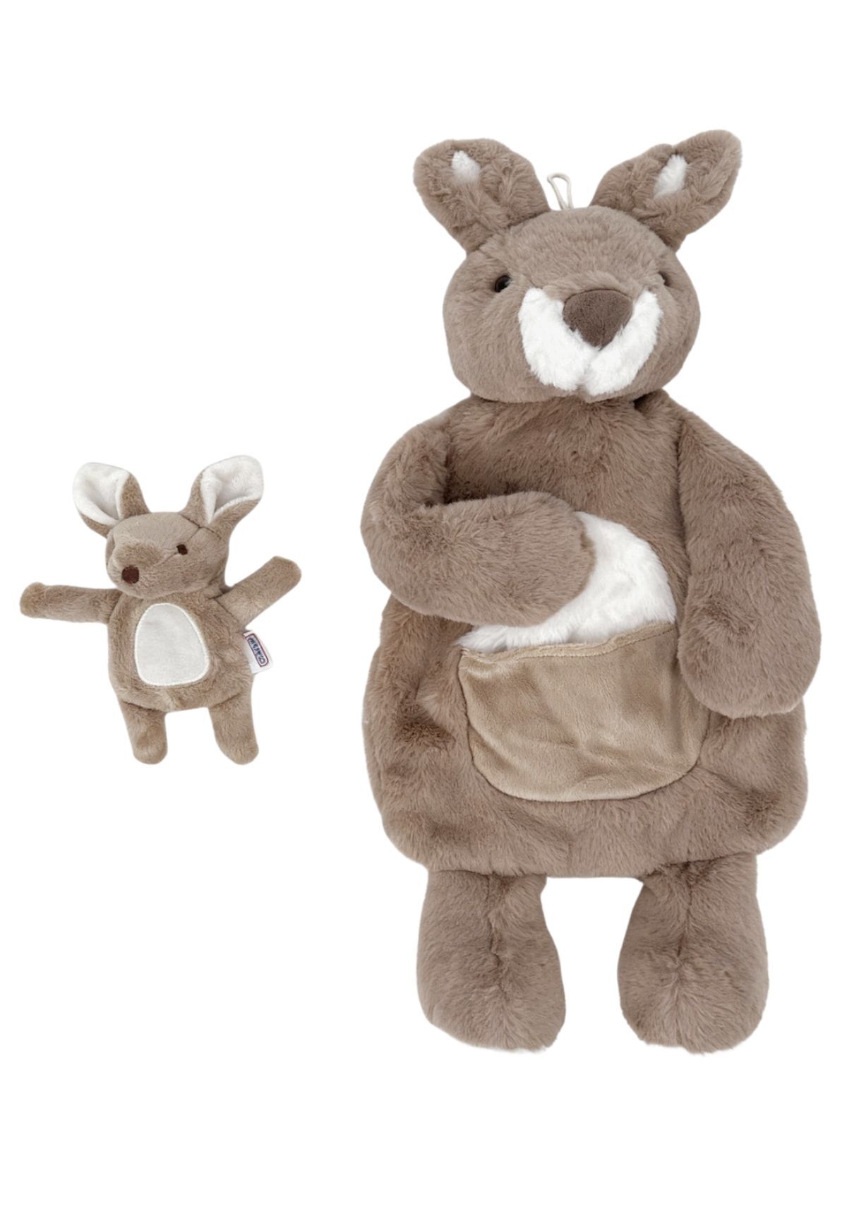 Die großen, flauschig weichen Plüschbezüge machen das Känguru zu einem echten Lieblingsstück. Ein langer Qualitäts-Reißverschluss am Rücken ermöglicht das einfache Entnehmen und Befüllen der Wärmflasche. Das Baby ist mit einem weichen Klettverschluss am Arm befestigt und kann jederzeit gelöst werden – perfekt zum Spielen oder eigenständigen Wärmen.