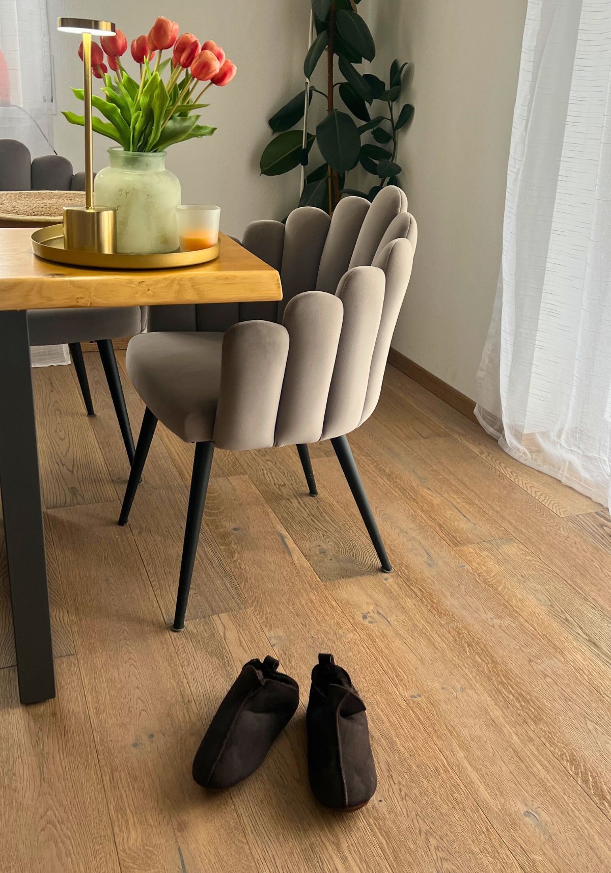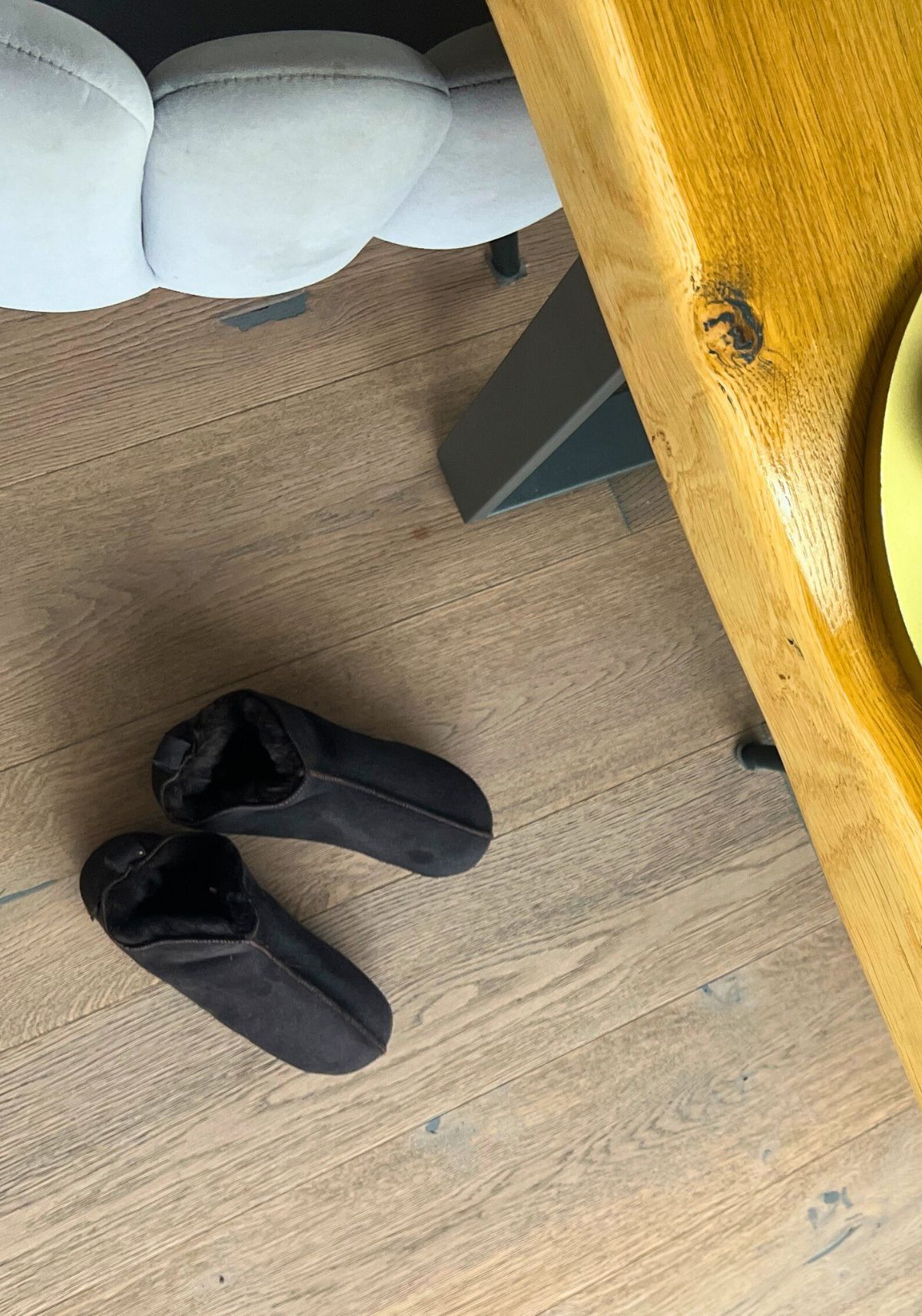 Die Außenseite besteht aus weichem Veloursleder, das nicht nur elegant aussieht, sonder auch zusätzliche Behaglichkeit bietet. Die Bali Hausschuhe sind ganzjährig tragbar: Im Sommer sorgen sie für einen kühlenden Effekt, während sie im Winter eine angenehme, trockene Wärme bieten und die Füße optimal temperieren.