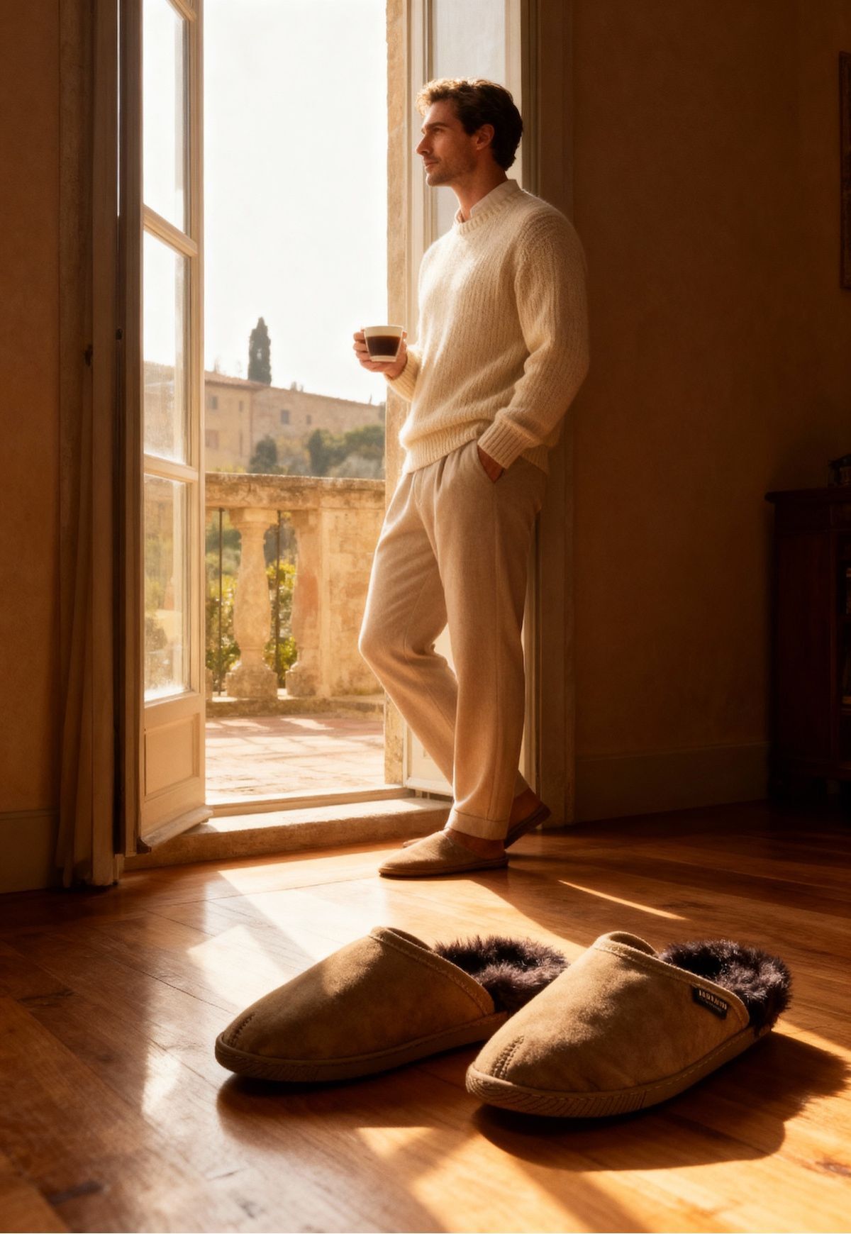 Unsere Lammfell Pantoffeln sind aus hochwertigem beigem Außenleder aus Velours gefertigt und bieten eine kuschelige Innenausstattung aus feinstem Merino-Lammfell. Dieses stammt direkt aus bayerischen Schäfereien und sorgt für ein unvergleichliches Tragegefühl.