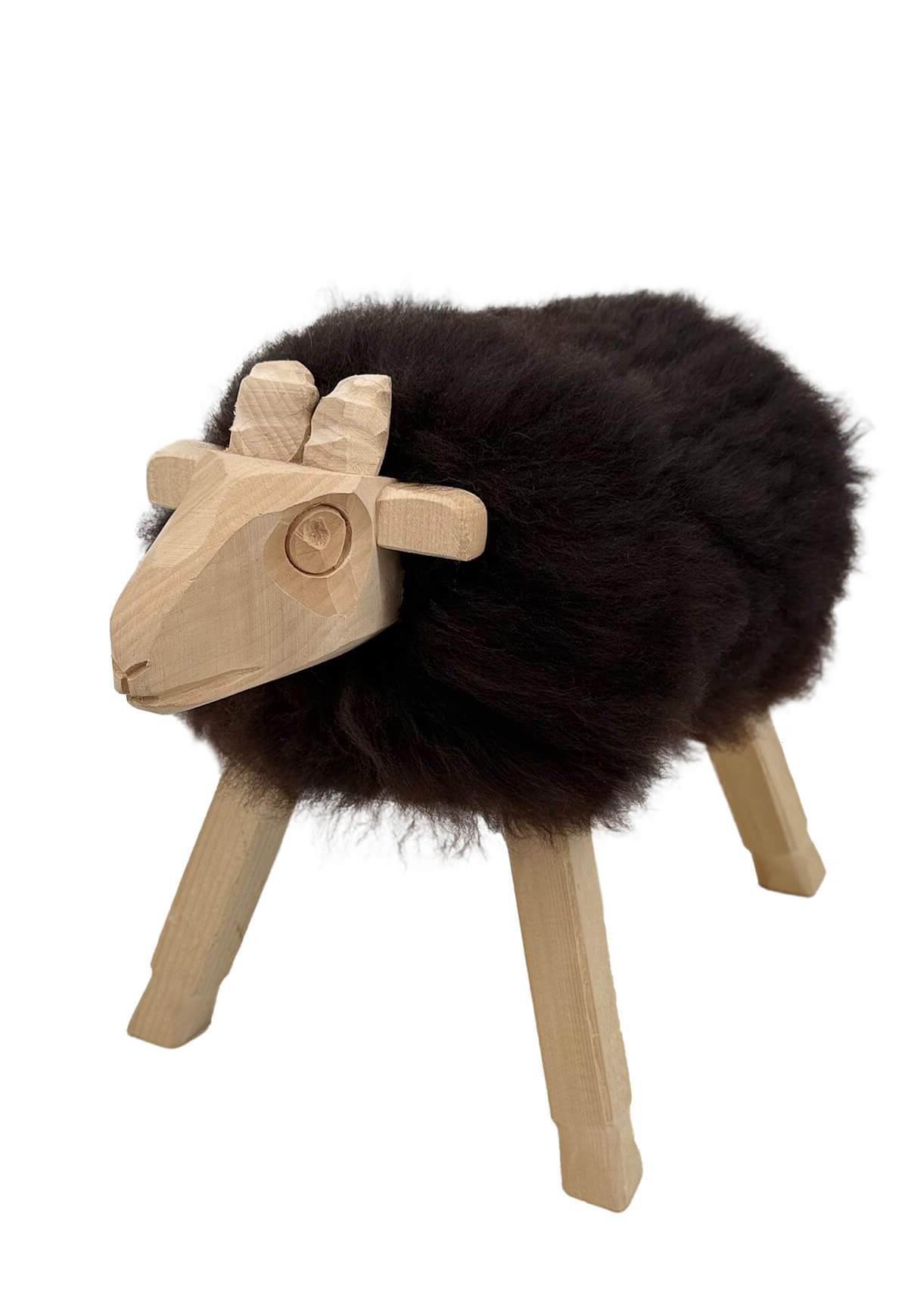 Freches Schäfchen aus Massivholz und kuscheligem Lammfell in Braun Handgefertigt von... mehr