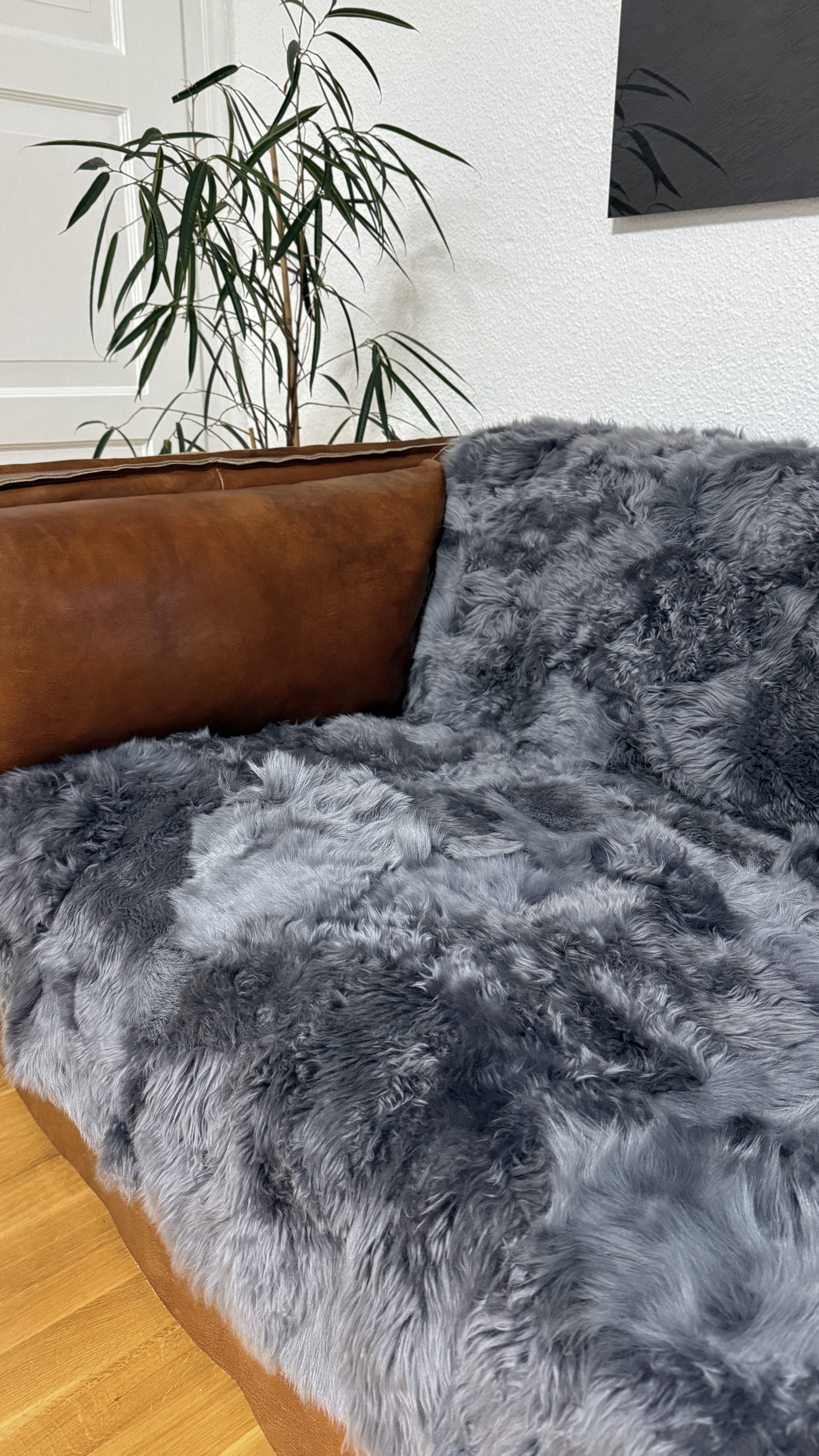 Diese luxuriöse Toscana Lammfelldecke in elegantem Dunkelgrau vereint natürlichen Komfort mit zeitloser Eleganz. Das seidig-weiche Toscana Lammfell bietet ein besonders angenehmes Hautgefühl, während die Unterseite aus hochwertigem Polarstoff für zusätzliche Kuscheligkeit und Strapazierfähigkeit sorgt.