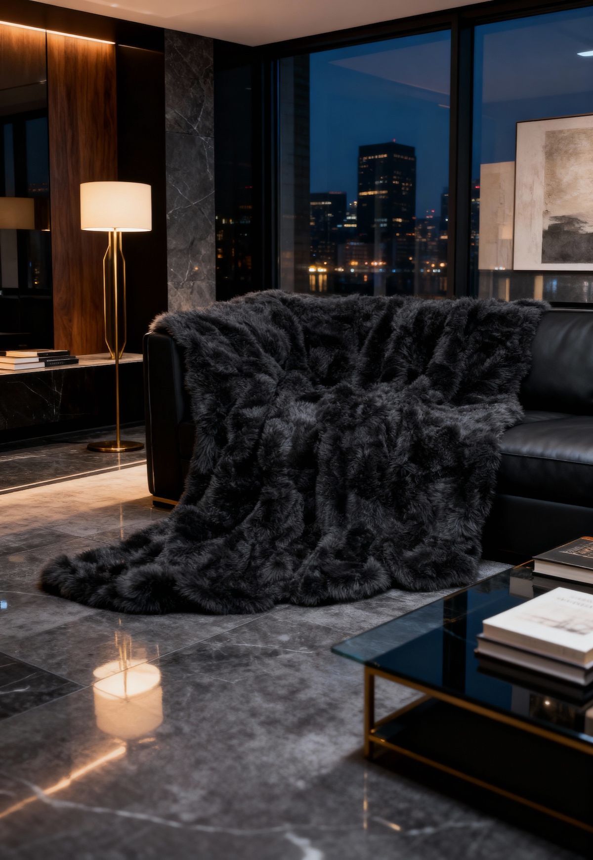 Tauchen Sie ein in luxuriöse Wärme und natürliche Eleganz mit unserer Toscana Lammfell Decke in edlem Dunkelgrau. Diese hochwertige Decke vereint feinste Naturmaterialien mit exquisitem Design und verleiht jedem Raum eine behagliche, stilvolle Atmosphäre.