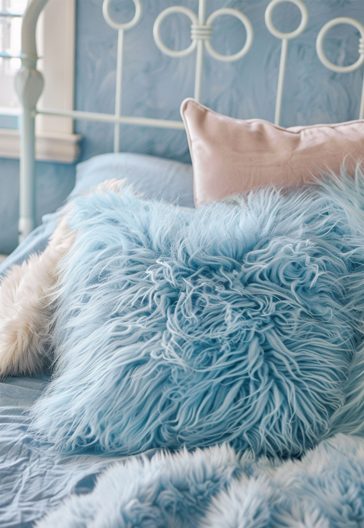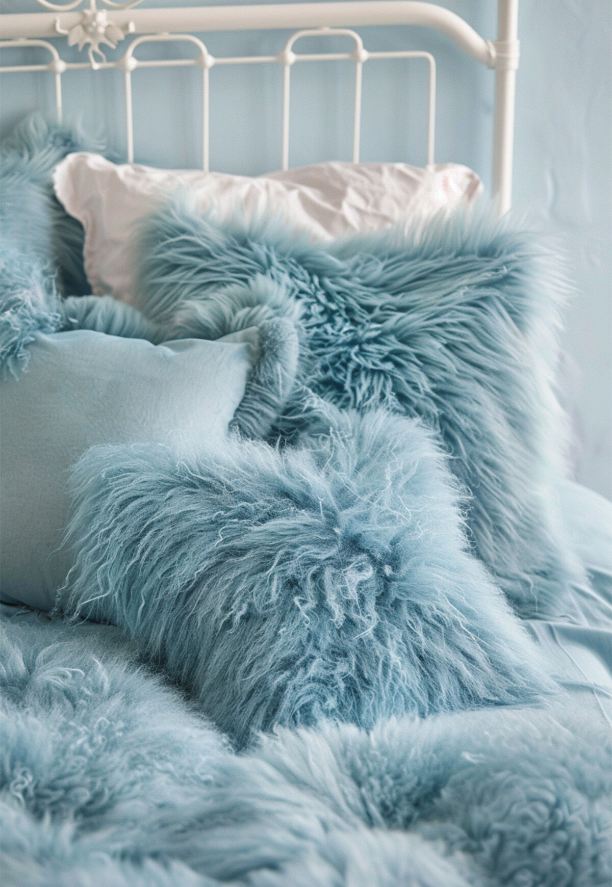 Lammfellkissen TIBET HIMMELBLAU mit Inlett