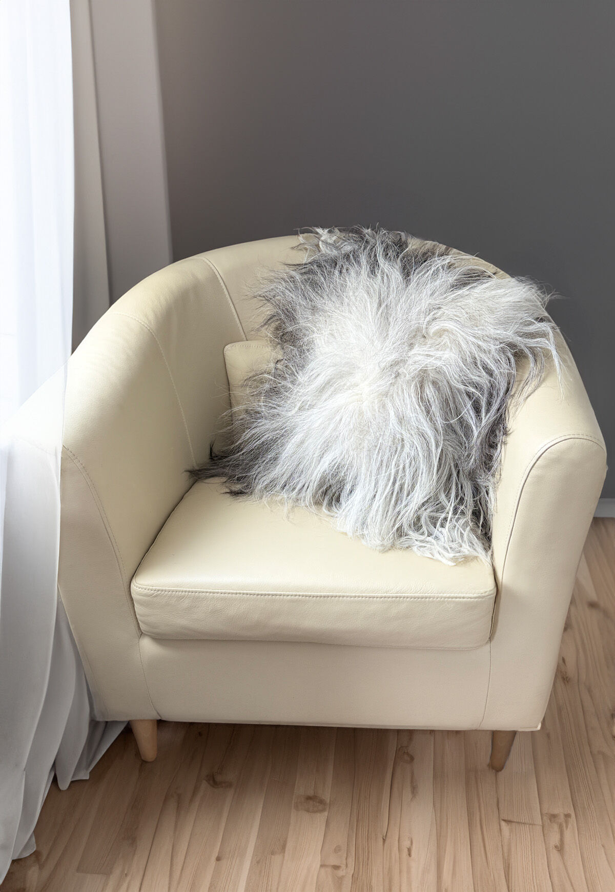 Lammfellkissen Heidschnucke Grau Weiß mit Inlett