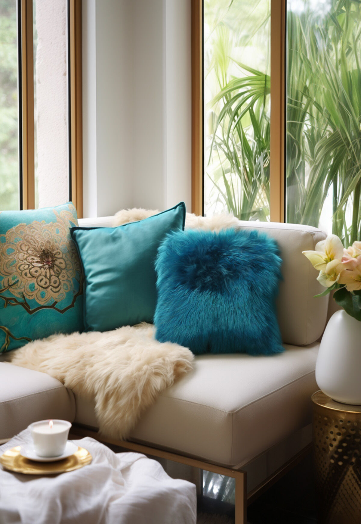 Lammfellkissen Merino Türkis ohne Inlett