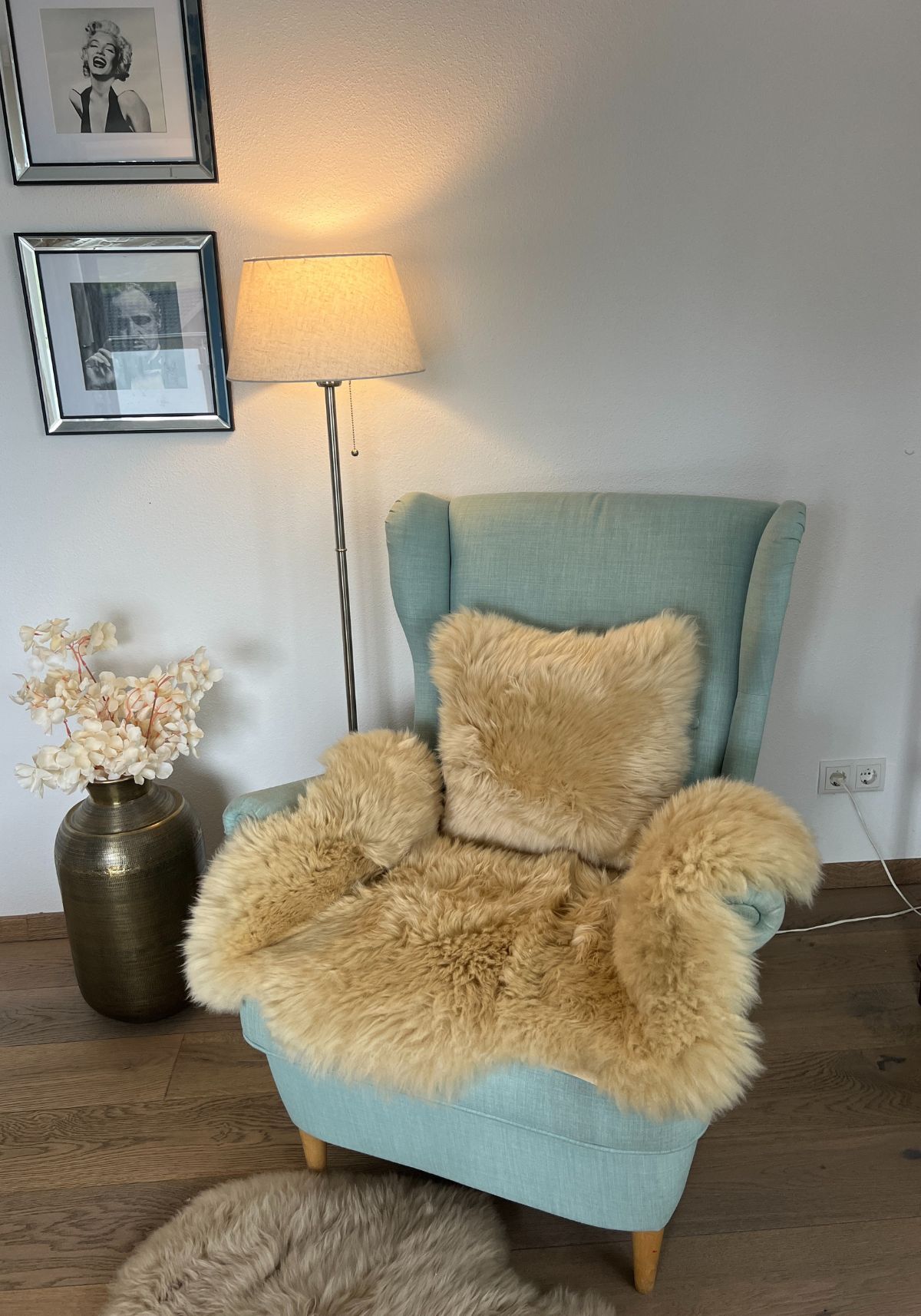 Kauf auf Rechnung möglichBeschreibungTraumhaftes Kuscheliges Merino Lammfellkissen – Ein Hauch von Natur für Ihr Zuhause!
